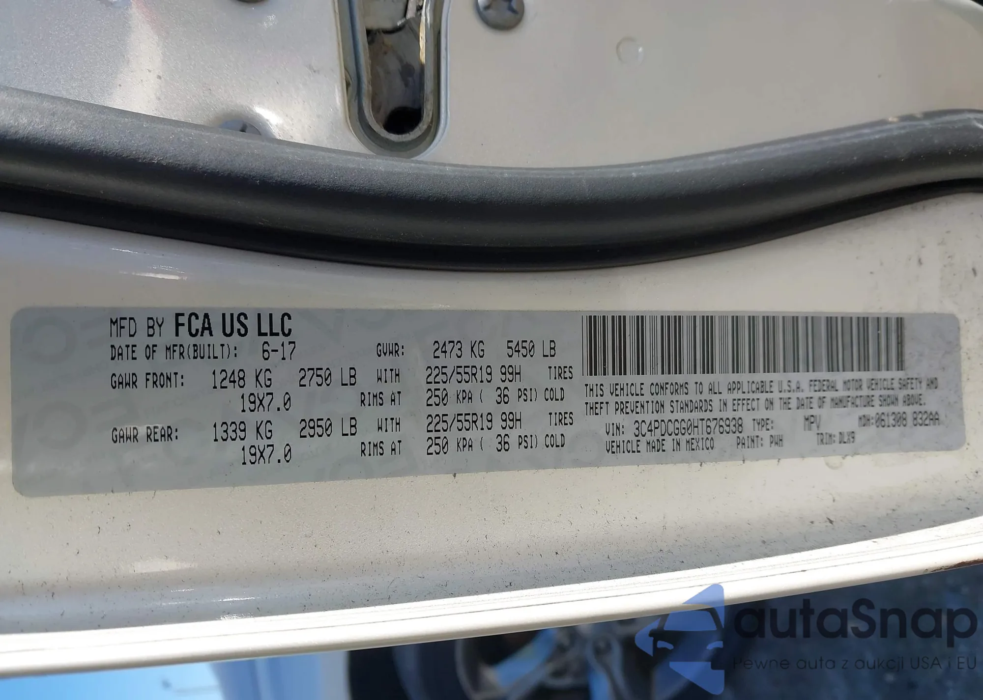 Samochód Dodge Journey 2017 (VIN 3C4PDCGG0HT676938) był już licytowany 1 razy i/lub sprzedaje go niezweryfikowany sprzedawca. Zalecamy raport Carfax i potwierdzenie możliwości rejestracji pojazdu przed zakupem.