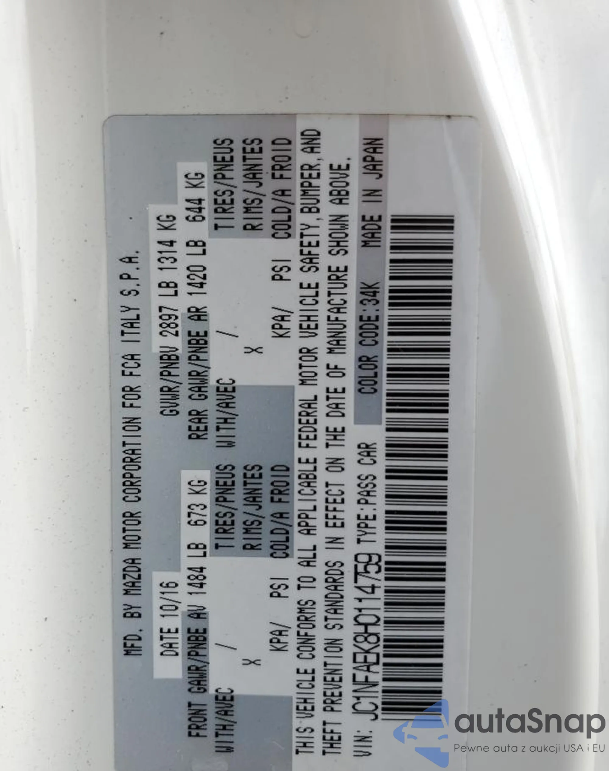 2017 Fiat 124 Spider ClassicaJC1NFAEK8H0114759 COPART