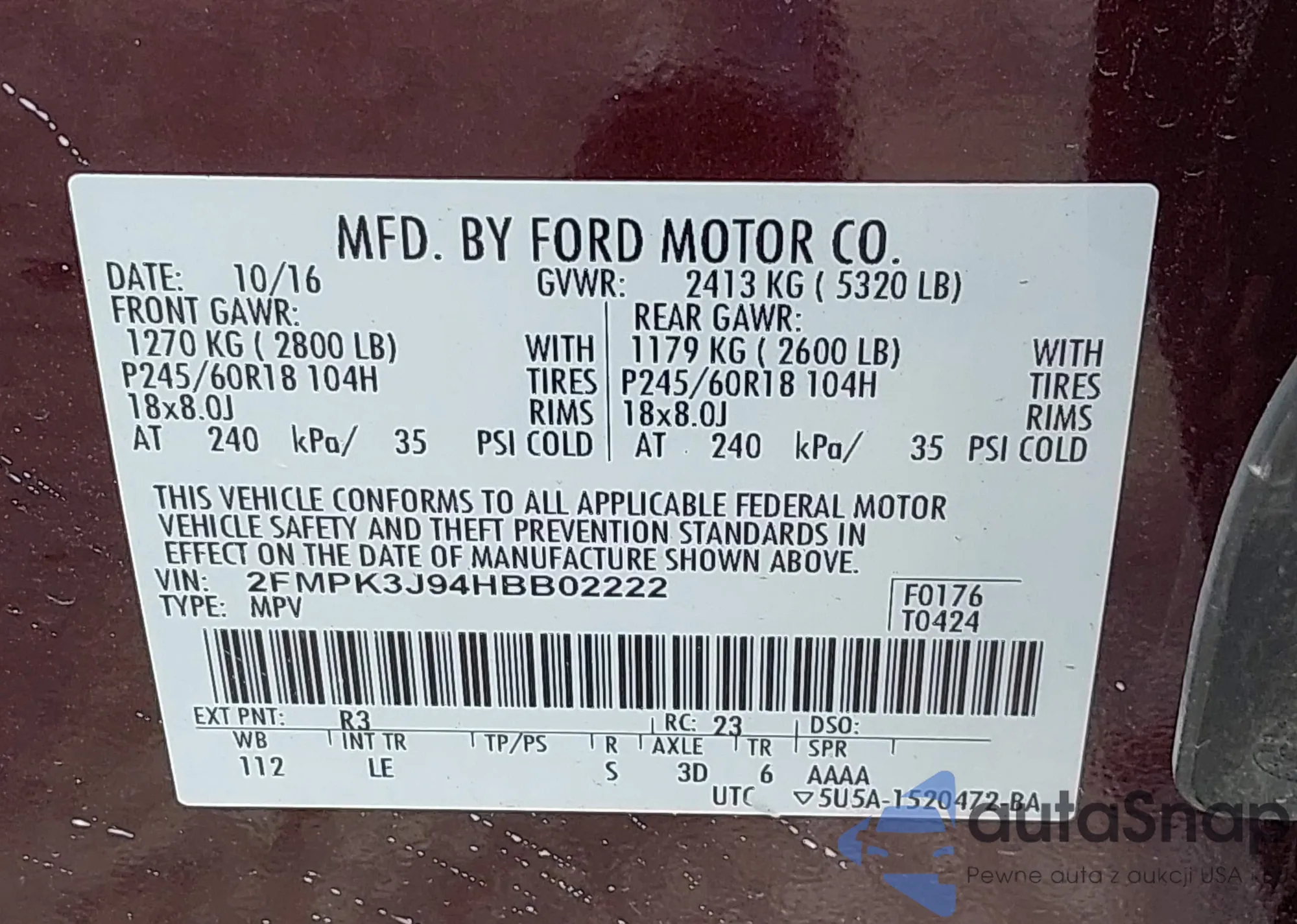 VIN: 2FMPK3J94HBB02222