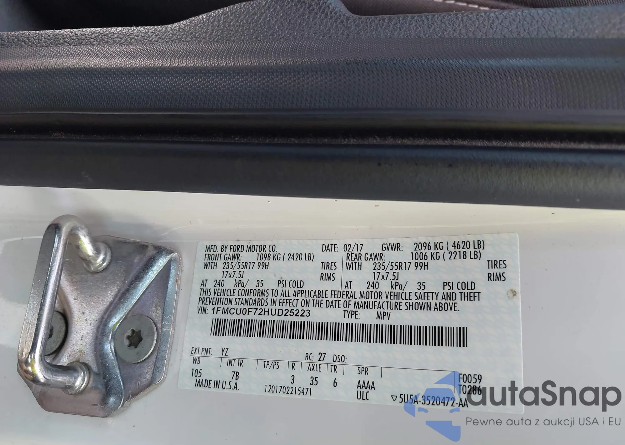 VIN: 1FMCU0F72HUD25223