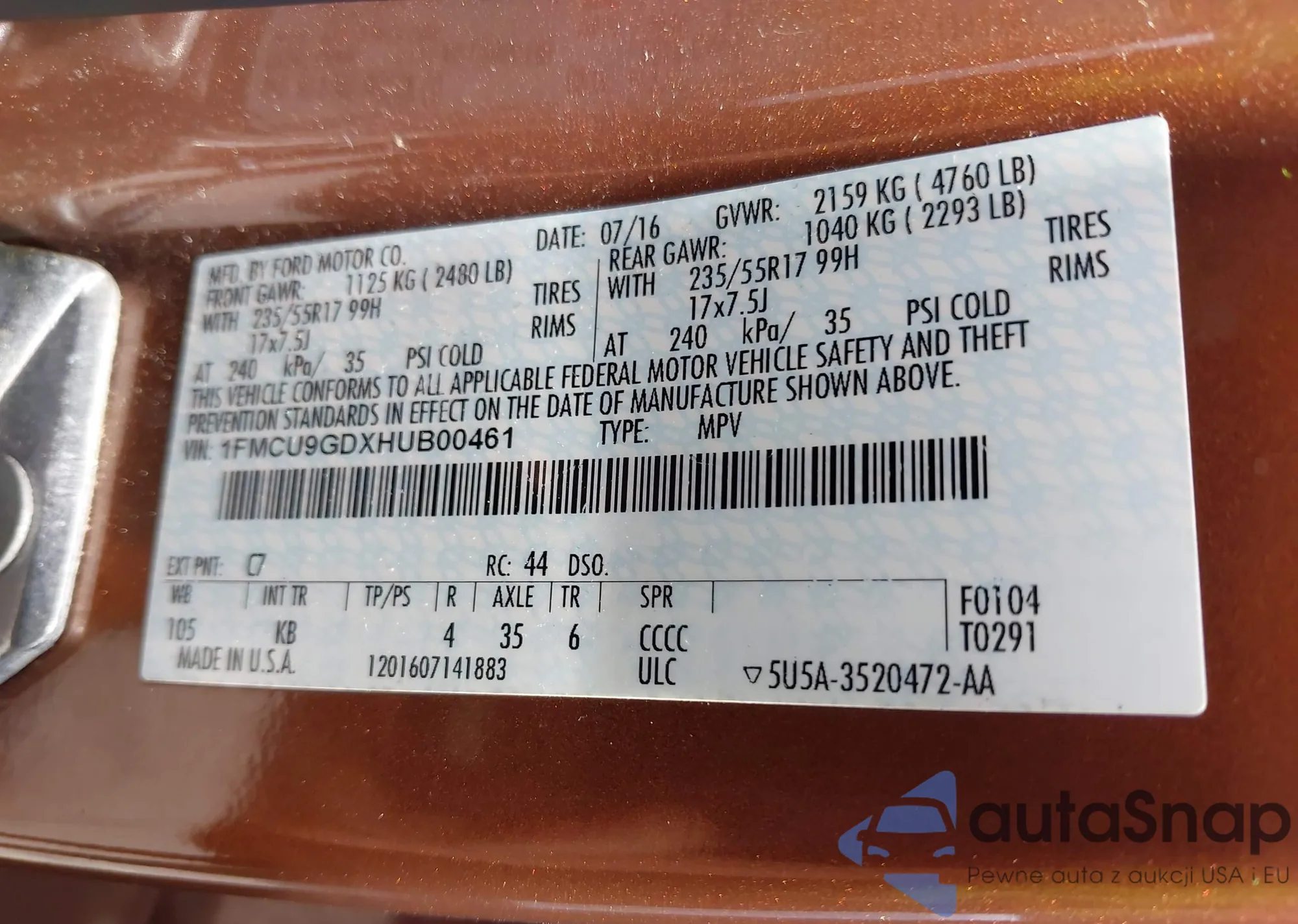 VIN: 1FMCU9GDXHUB00461