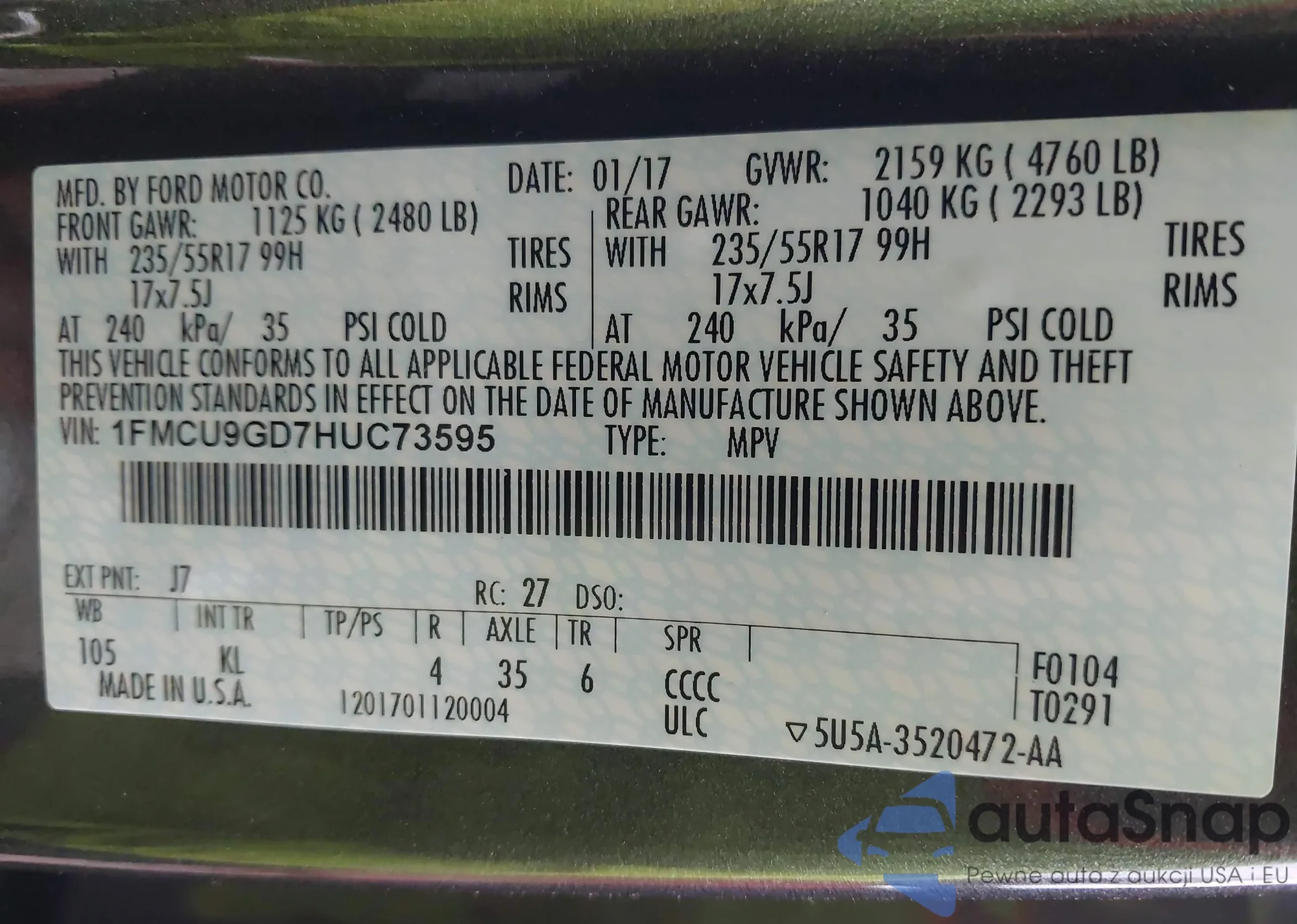 VIN: 1FMCU9GD7HUC73595