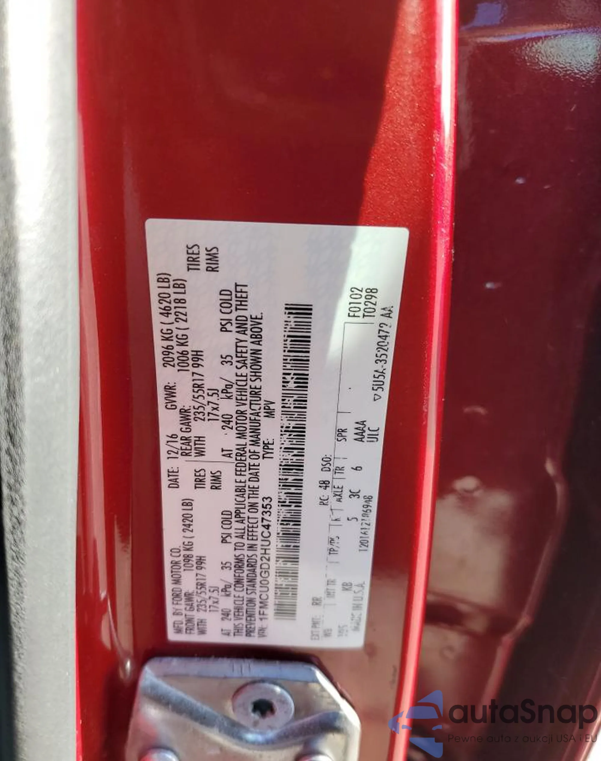 Ford Escape 2017 – Historia pojazdu (sprzedany na COPART)