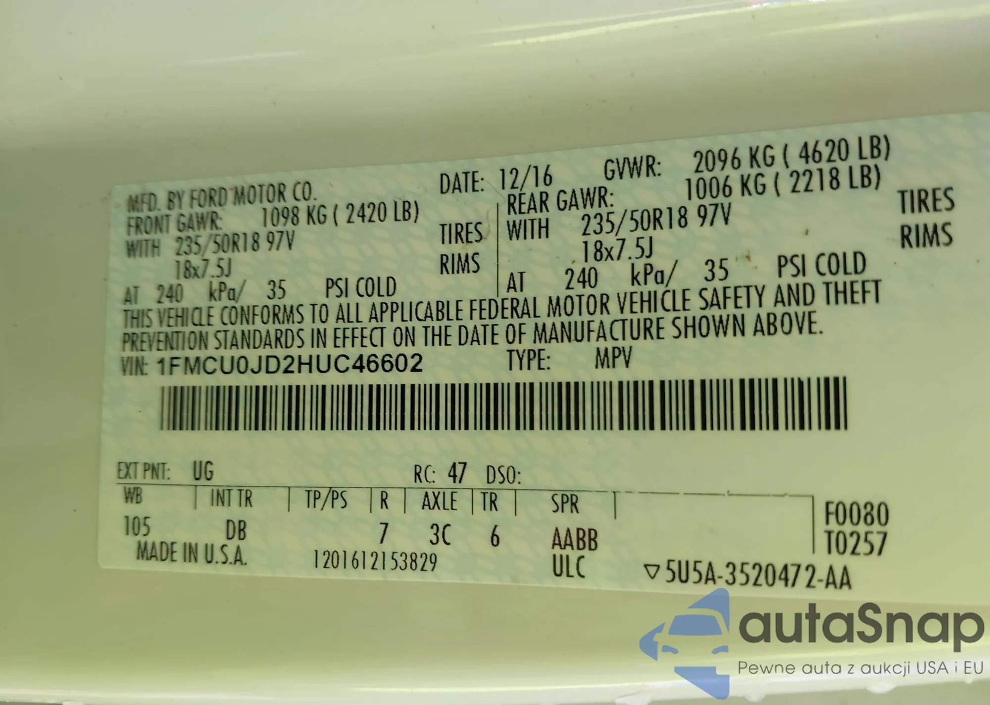 VIN: 1FMCU0JD2HUC46602