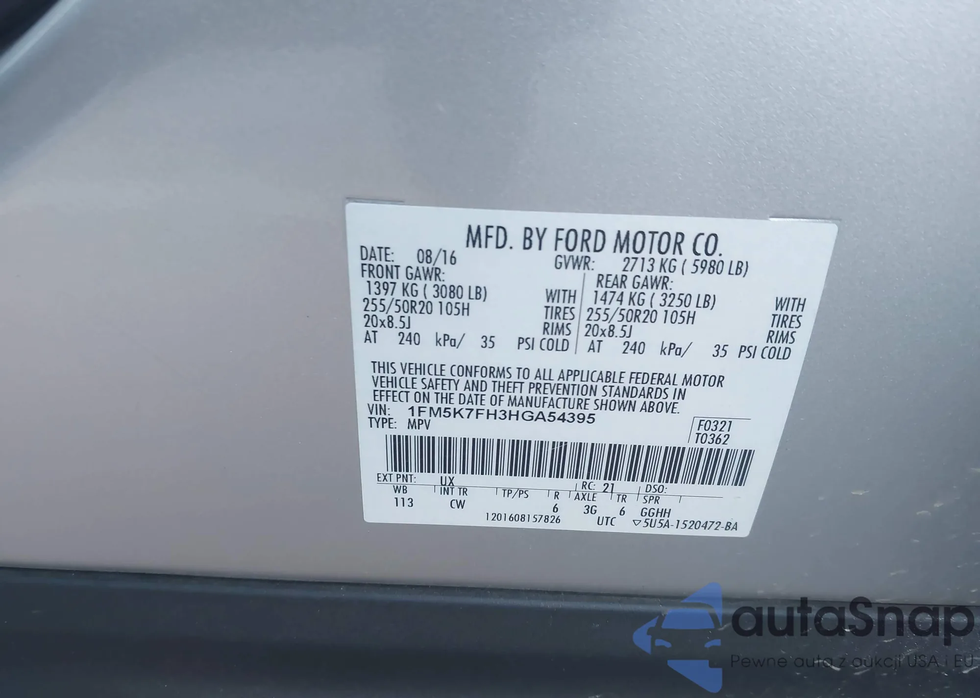 VIN: 1FM5K7FH3HGA54395