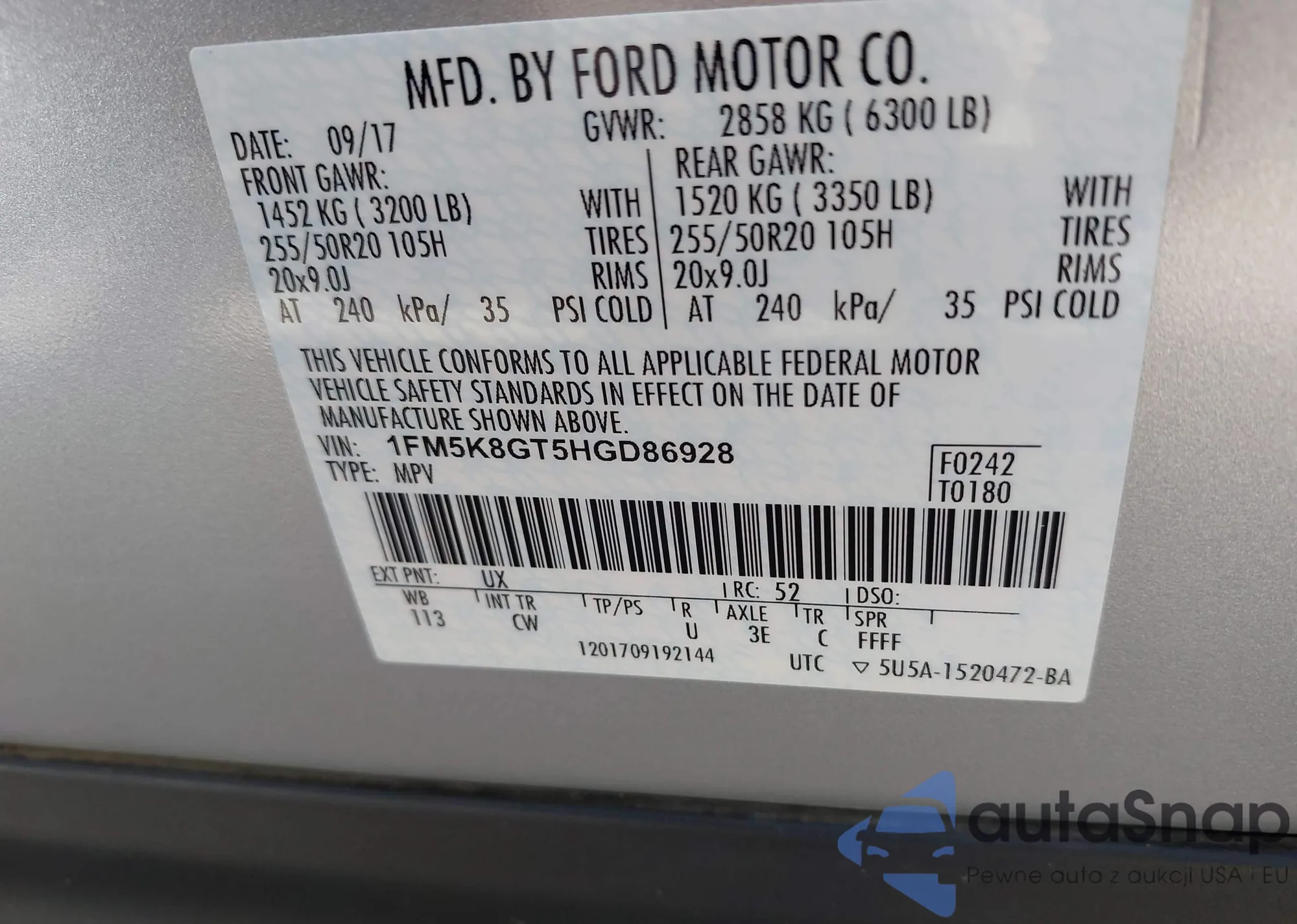 • VIN: 1FM5K8GT5HGD86928