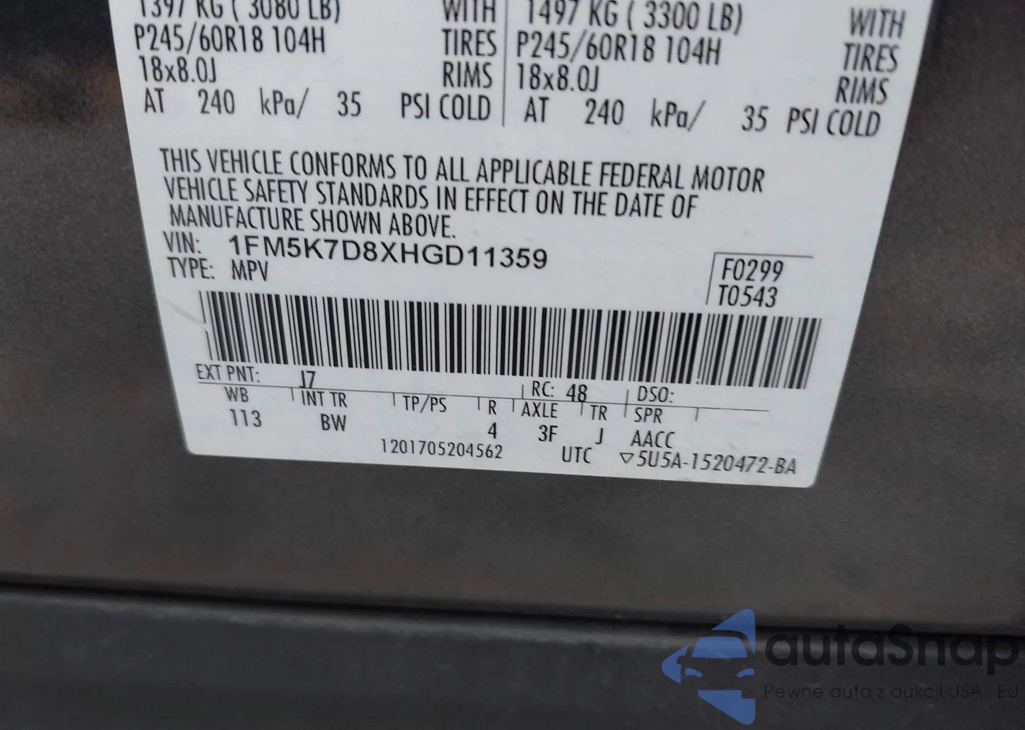 VIN: 1FM5K7D8XHGD11359
