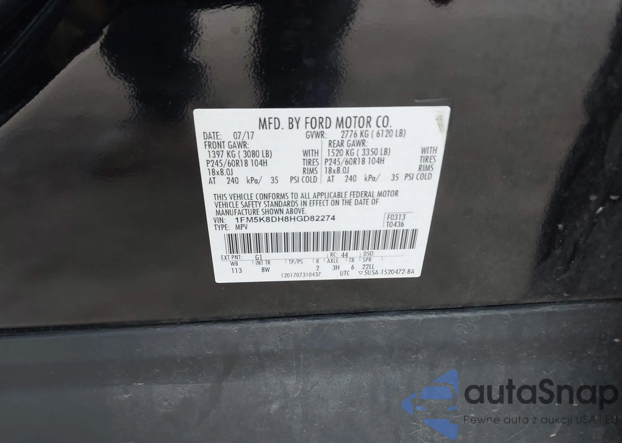 VIN: 1FM5K8DH8HGD82274