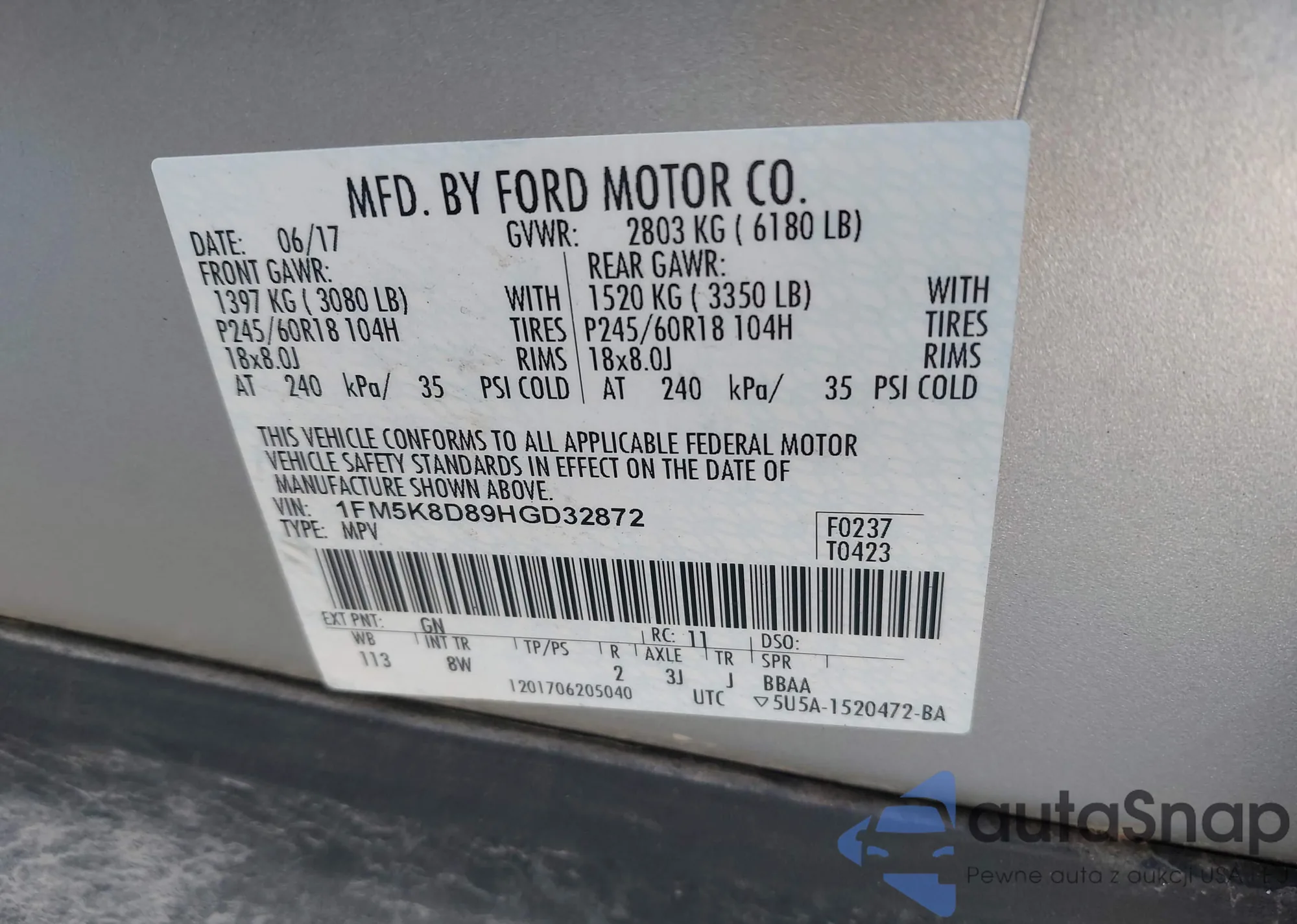 VIN: 1FM5K8D89HGD32872