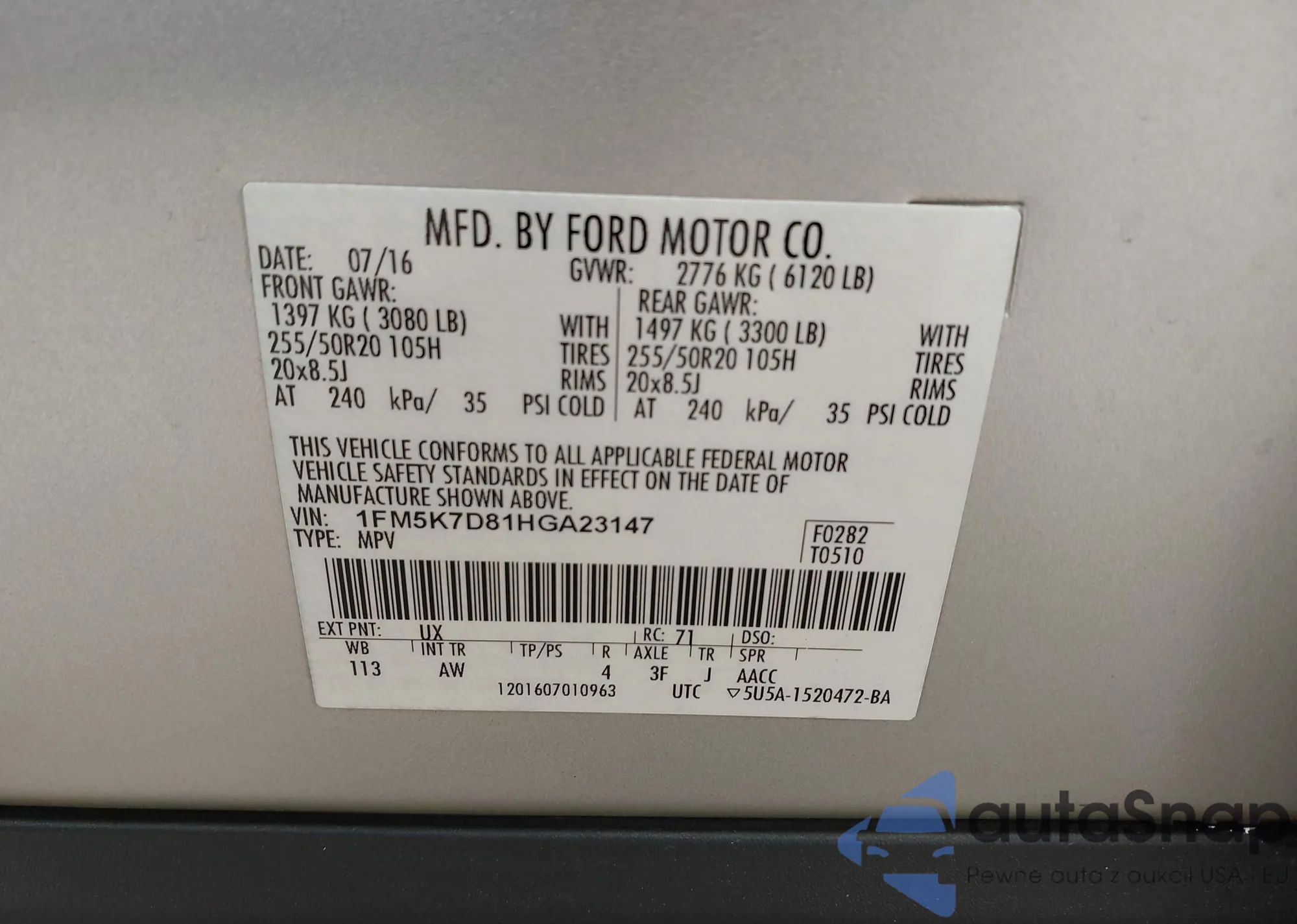 VIN: 1FM5K7D81HGA23147