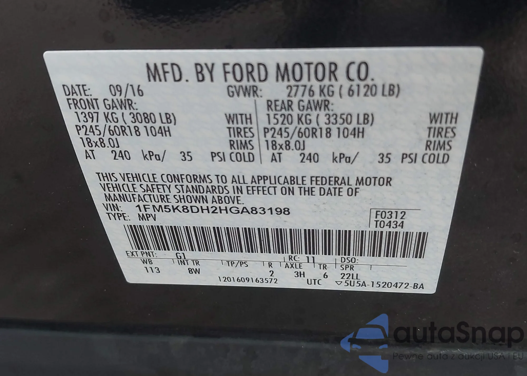 VIN: 1FM5K8DH2HGA83198