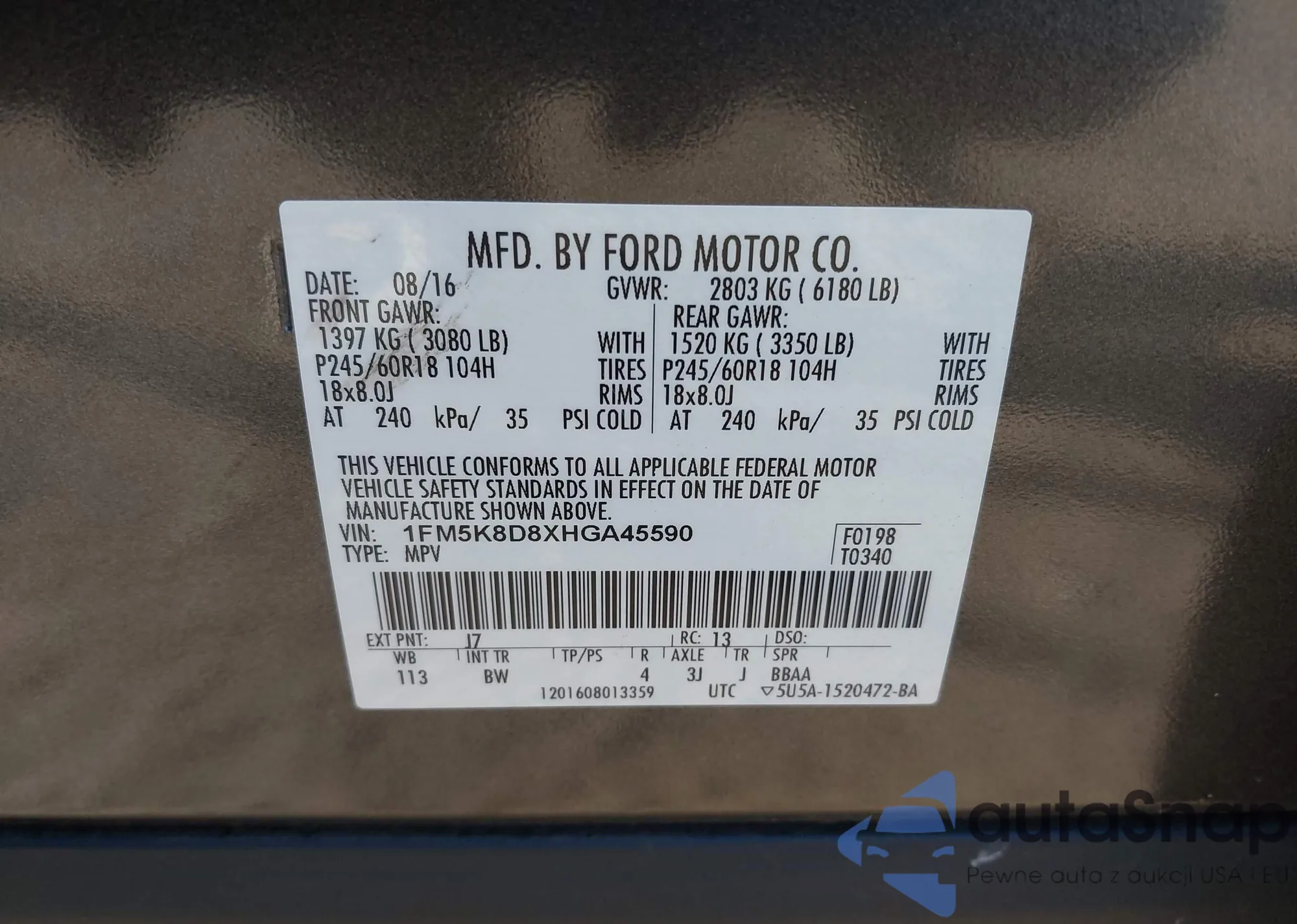 VIN: 1FM5K8D8XHGA45590
