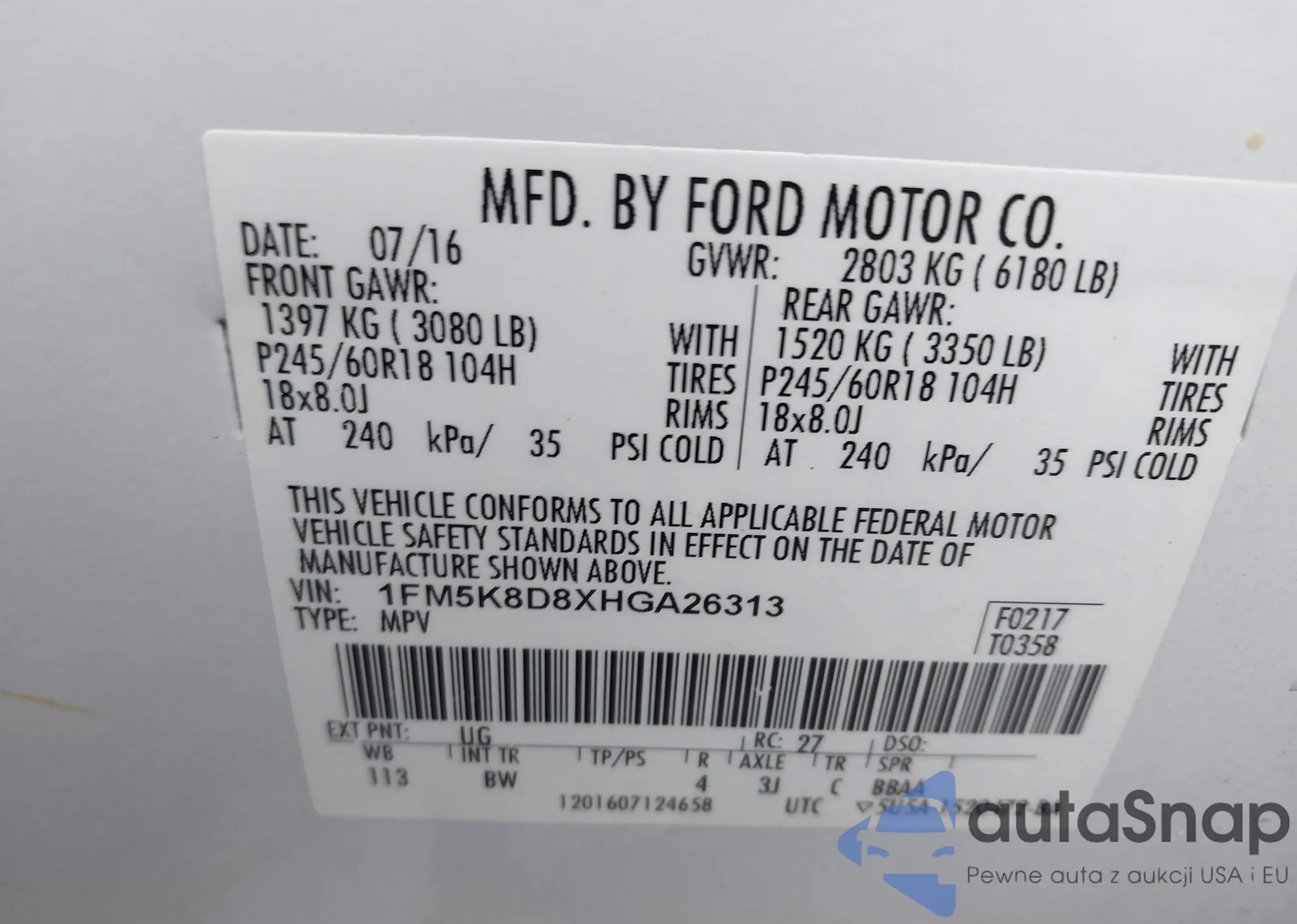 VIN: 1FM5K8D8XHGA26313