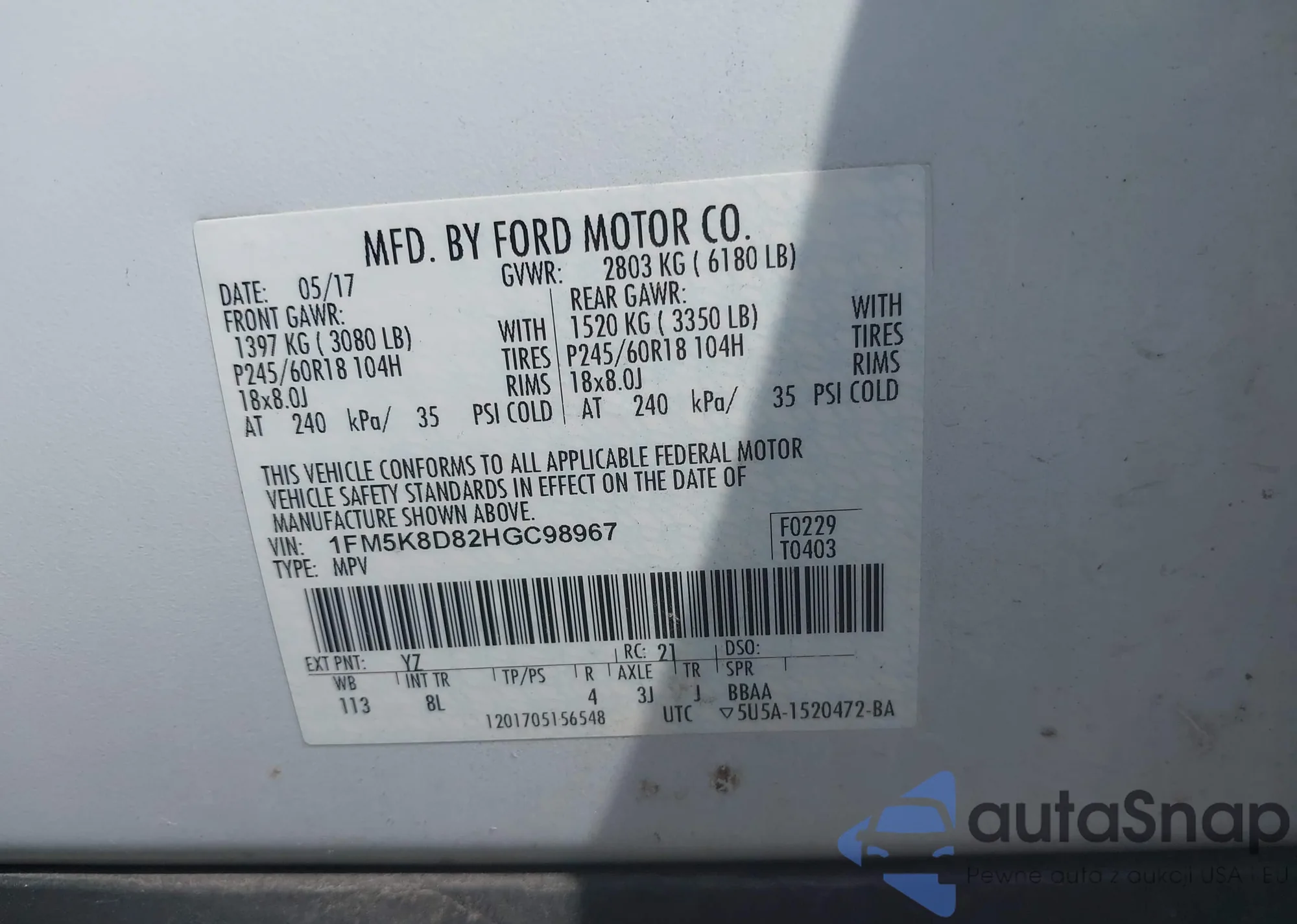 VIN: 1FM5K8D82HGC98967