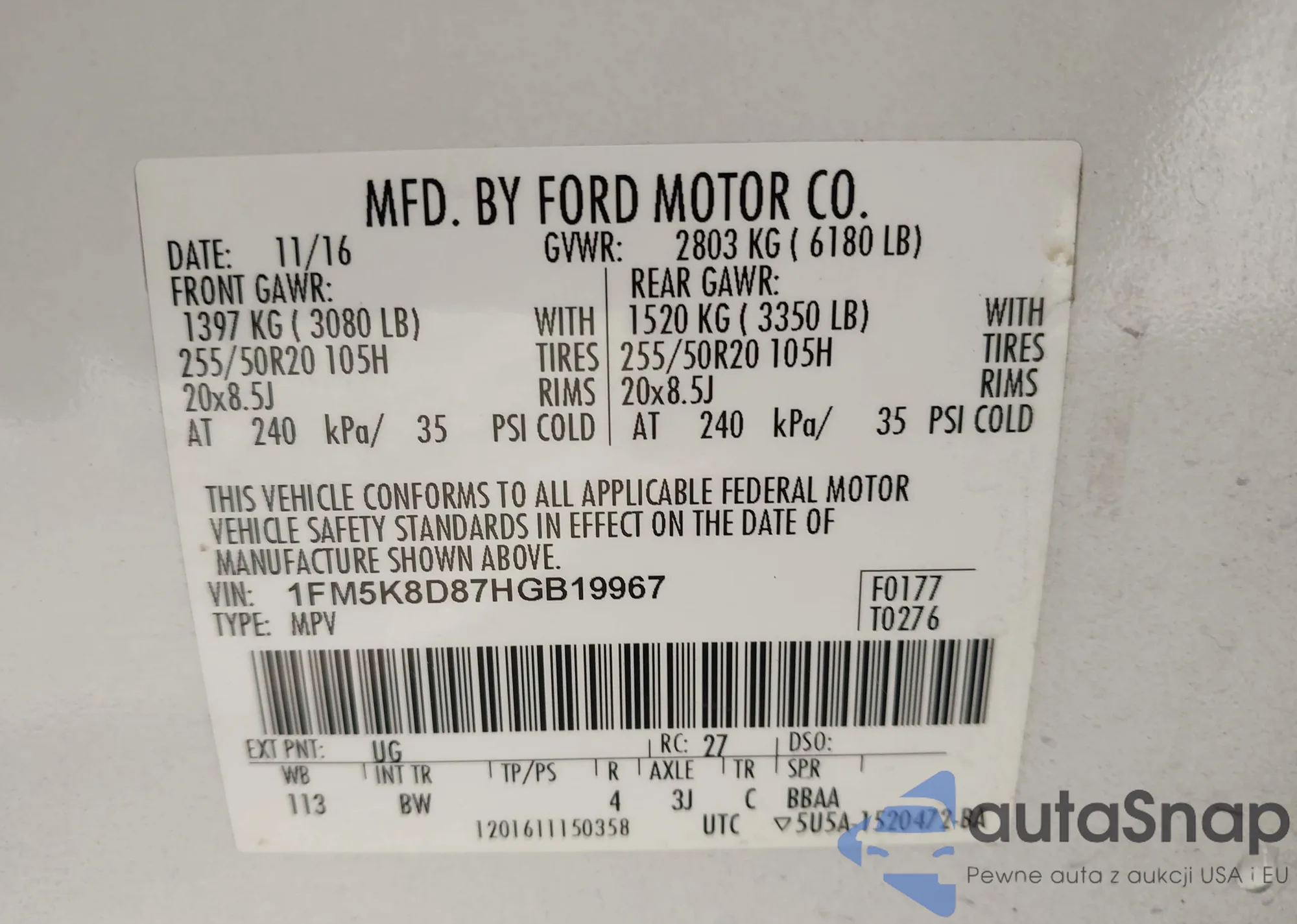 VIN: 1FM5K8D87HGB19967