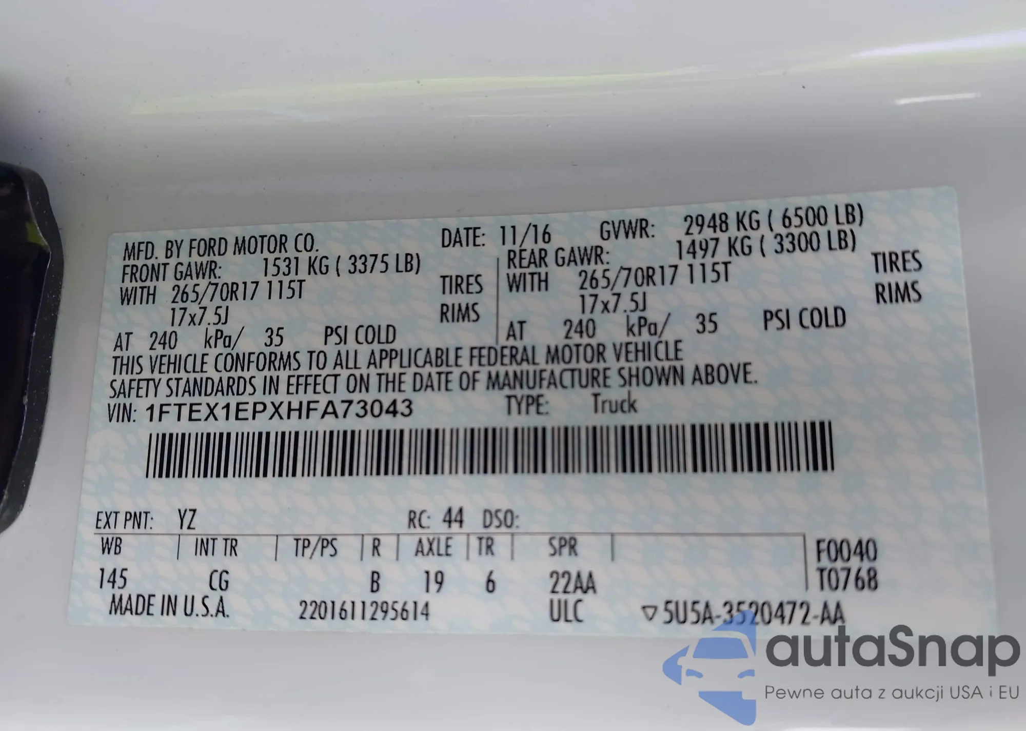 Ford F-150 2017 – Historia pojazdu (sprzedany na IAAI)