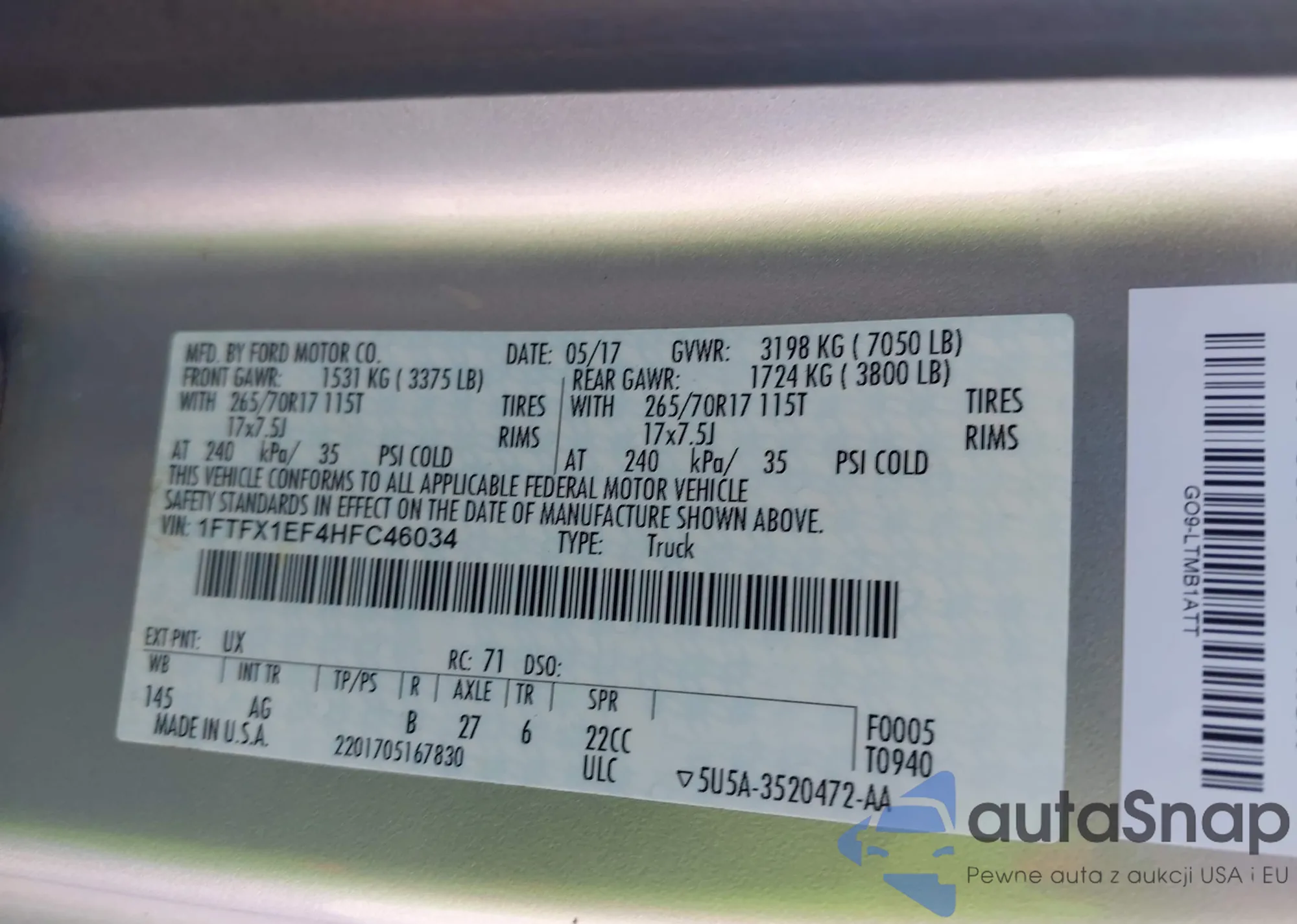 VIN: 1FTFX1EF4HFC46034