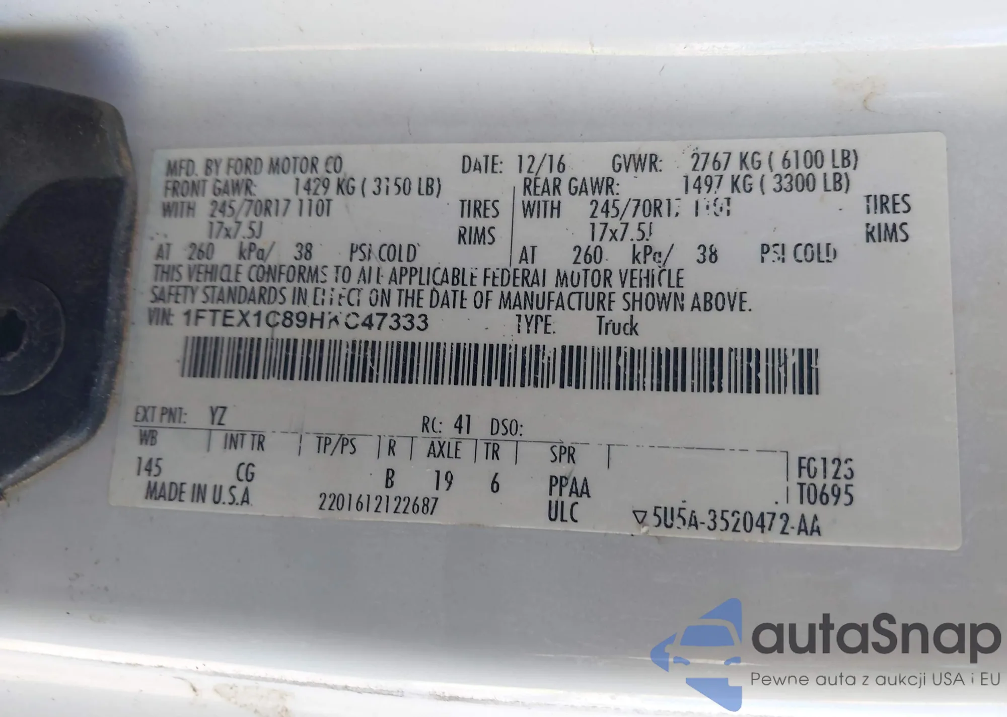 ZAREJESTRUJ SIĘ na AutaSnap, wpłać depozyt gwarancyjny zwrotny (określa Twoją „siłę” licytacji). Po aktywacji konta będziesz mógł licytować na dowolne licytacje Copart i IAAI bezpośrednio z panelu użytkownika.