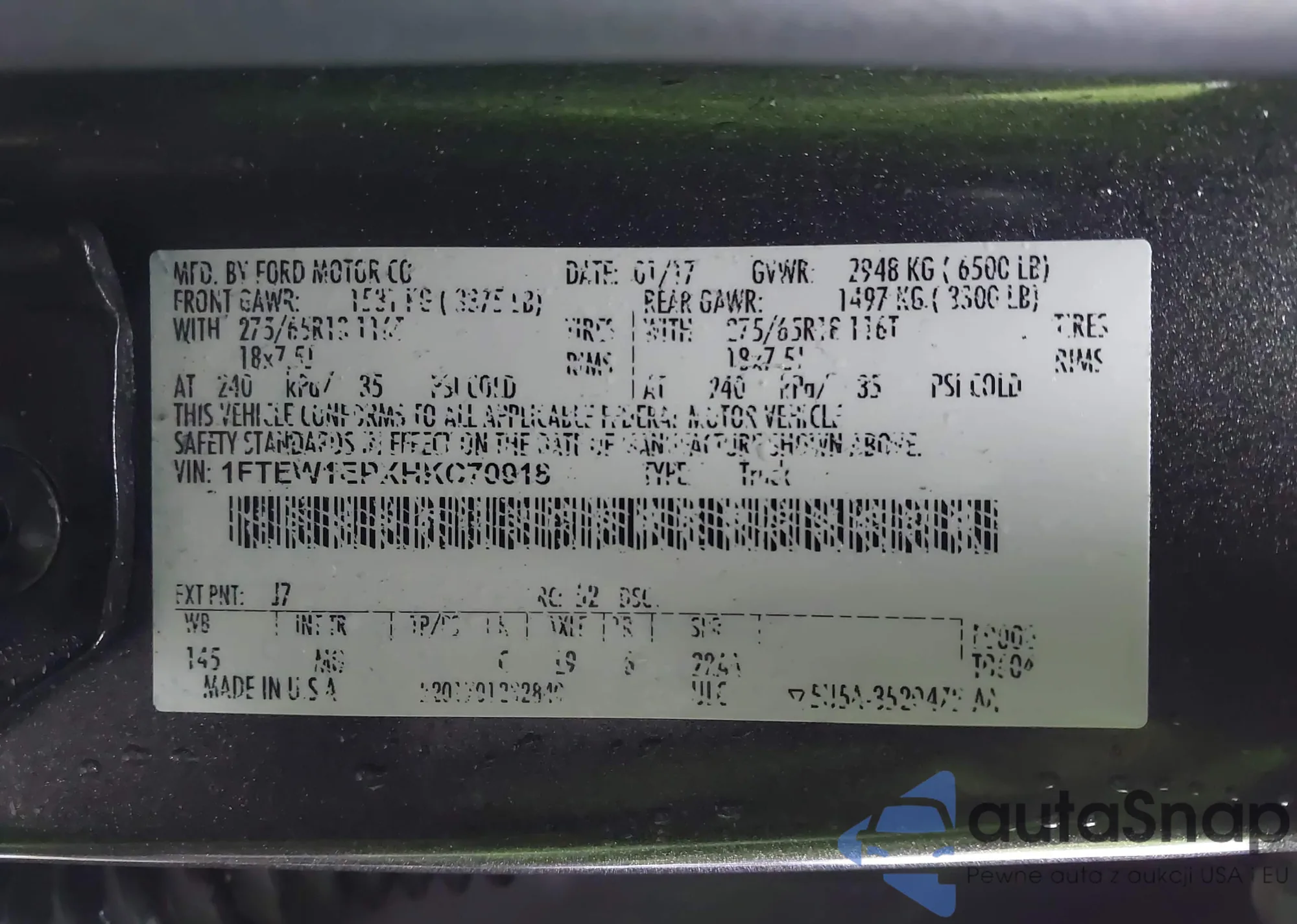 VIN: 1FTEW1EPXHKC70918