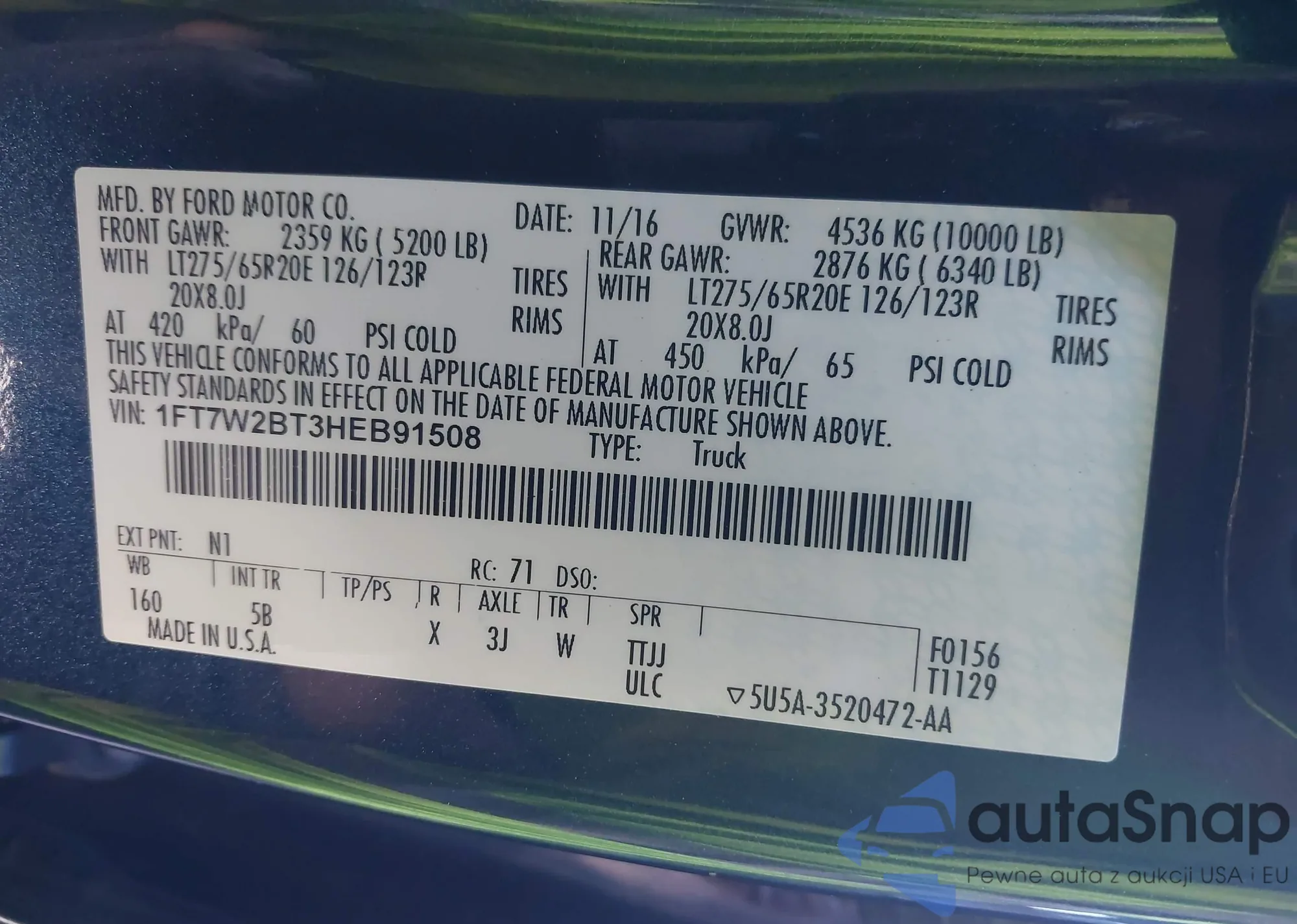 • VIN: 1FT7W2BT3HEB91508