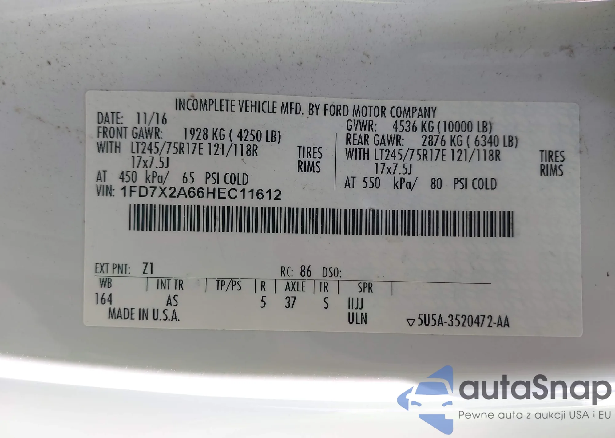 • VIN: 1FD7X2A66HEC11612