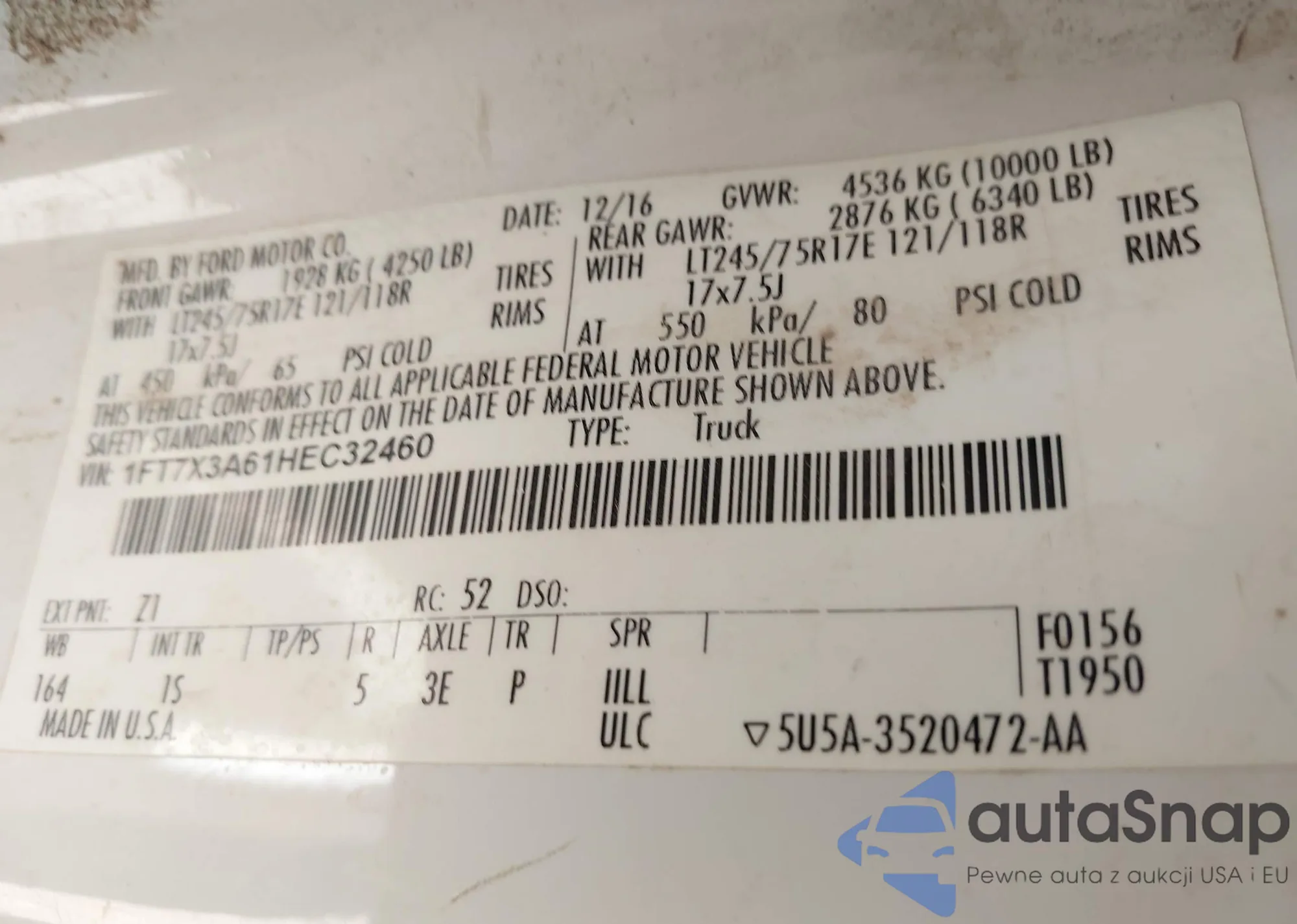 VIN: 1FT7X3A61HEC32460