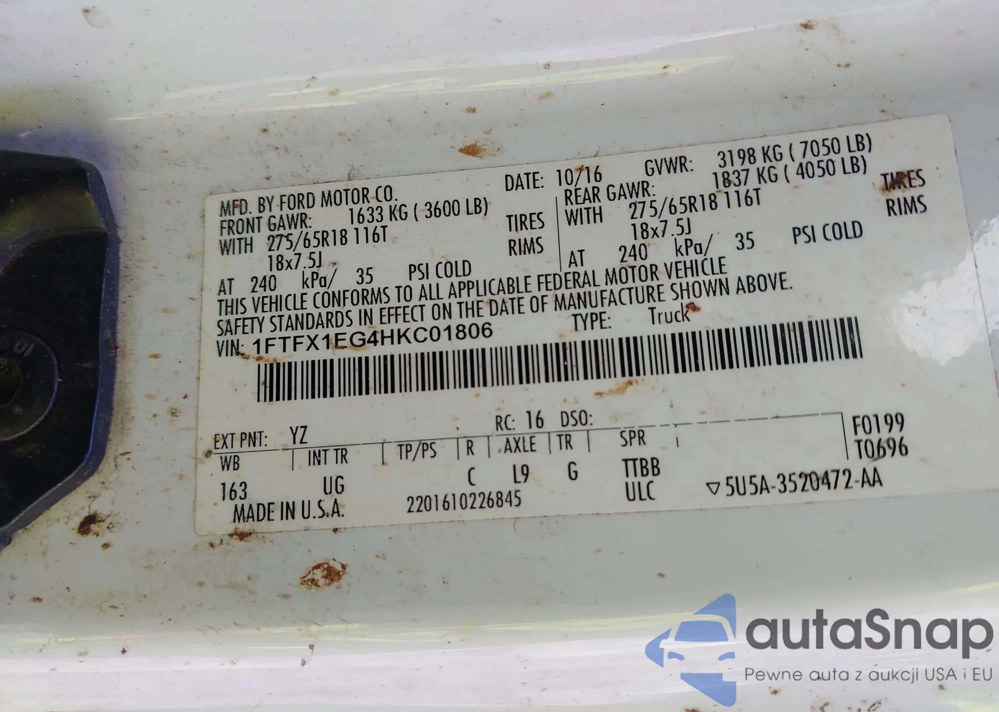 VIN: 1FTFX1EG4HKC01806