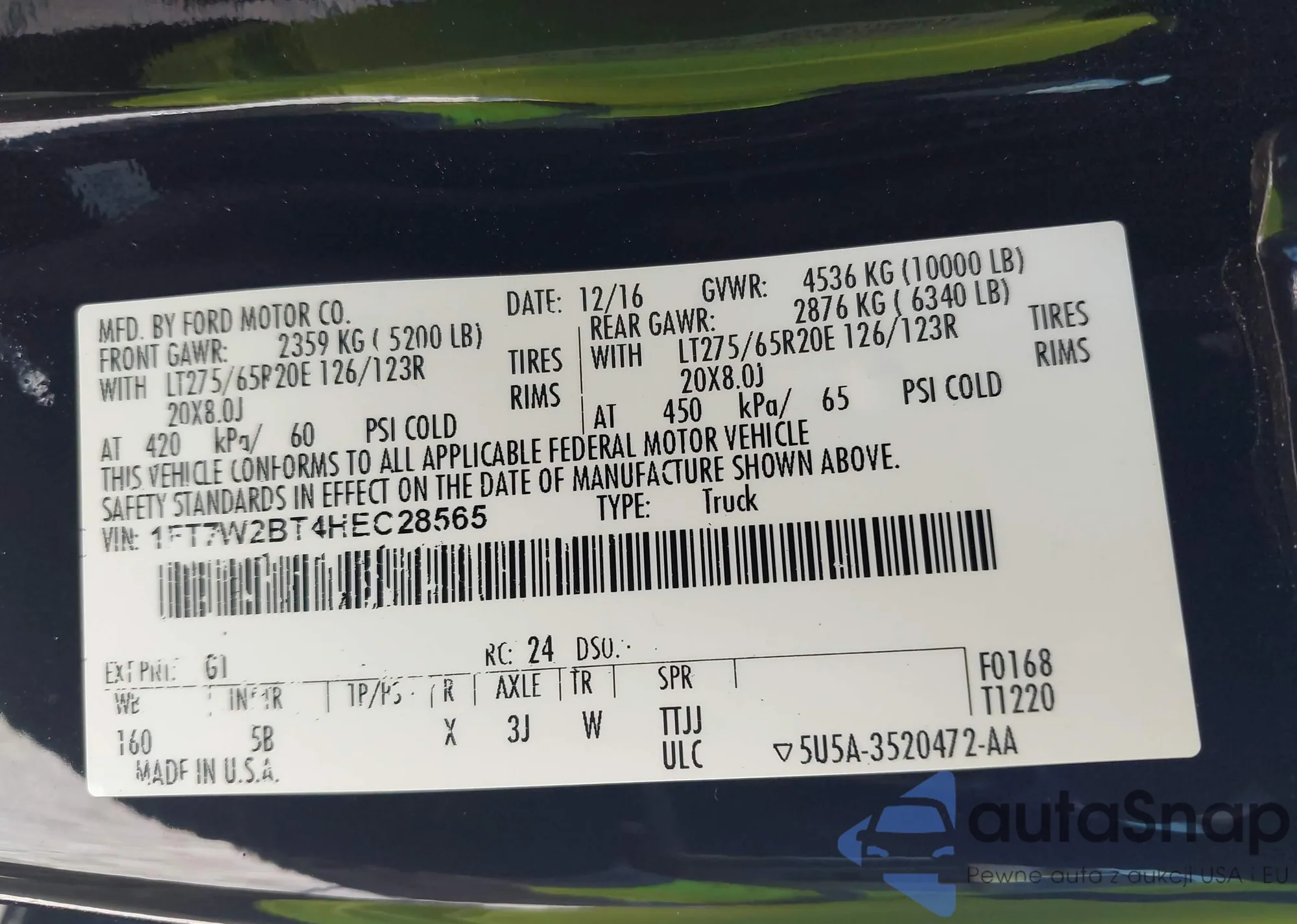 VIN: 1FT7W2BT4HEC28565