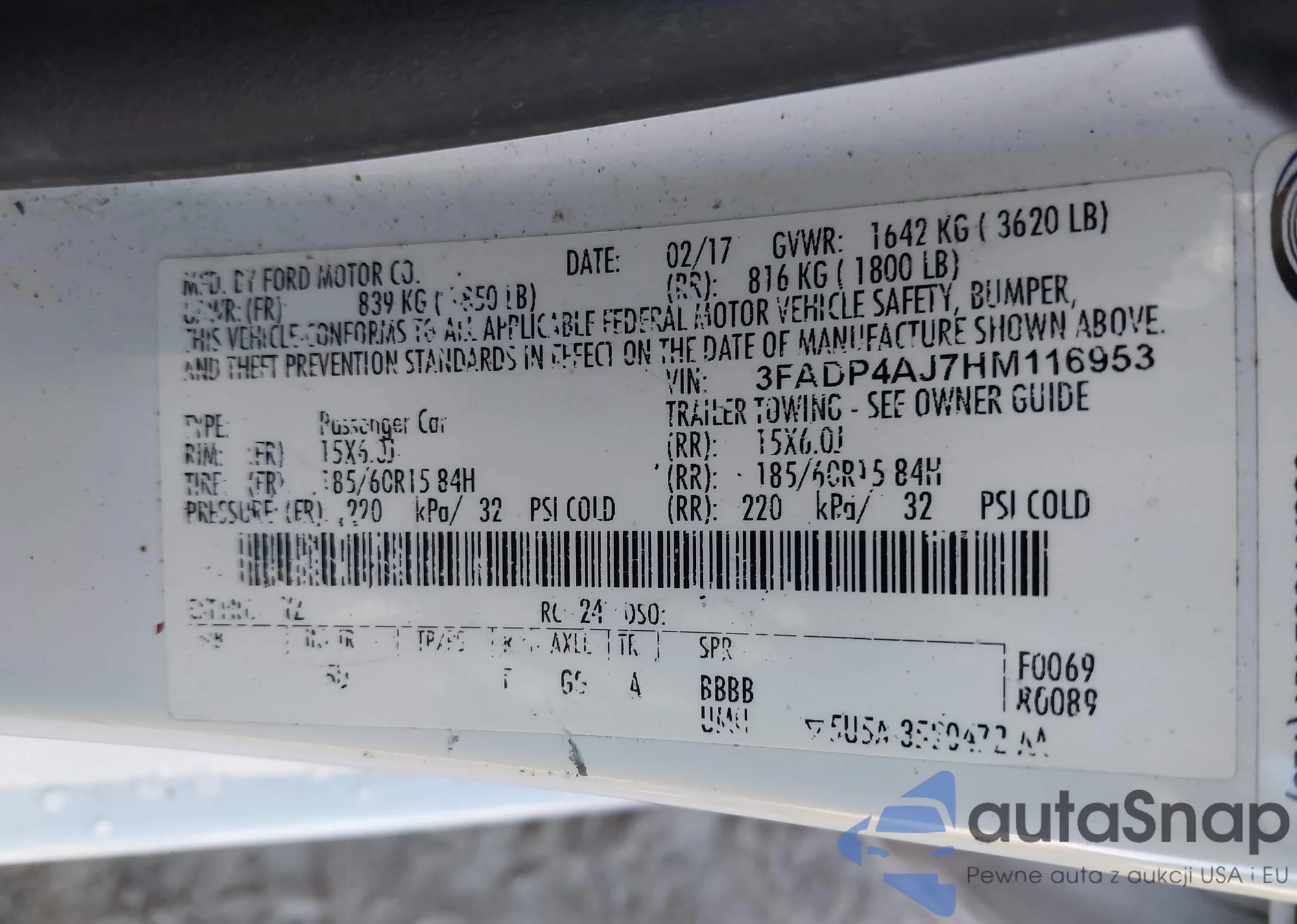 • VIN: 3FADP4AJ7HM116953
