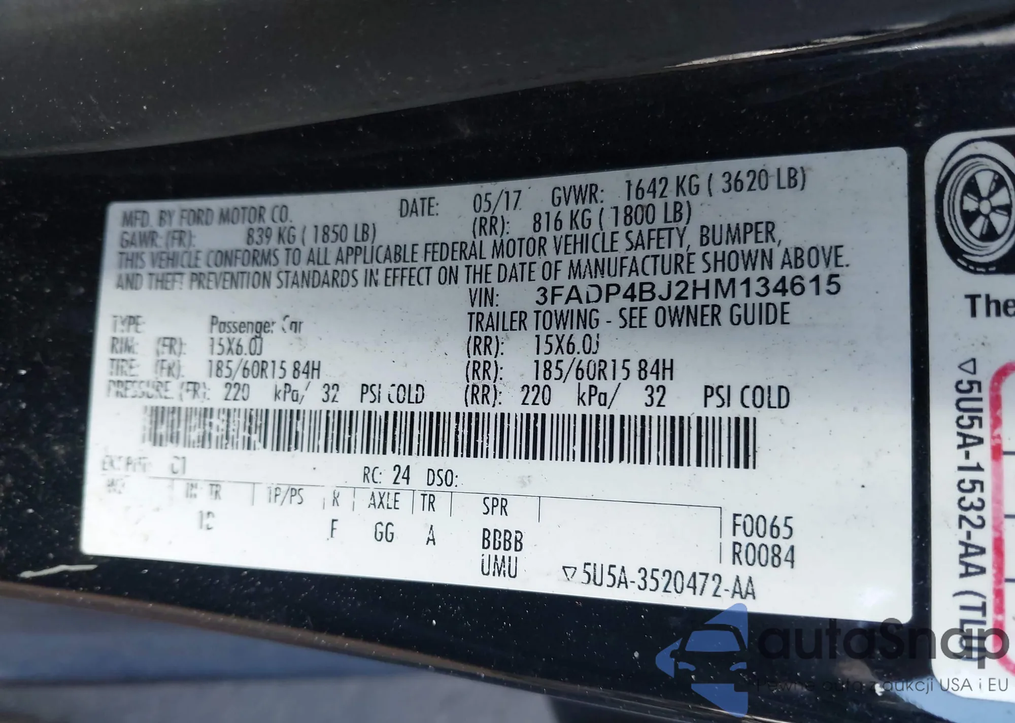 Samochód Ford Fiesta 2017 (VIN 3FADP4BJ2HM134615) nie był wcześniej licytowany. Dokumenty są czyste, przebieg odpowiada lub jest niższy niż średnia rynku. Sprzedaje go firma ubezpieczeniowa – polecamy zakup. Dostawa do portu zajmie ok. 6–8 tygodni.
