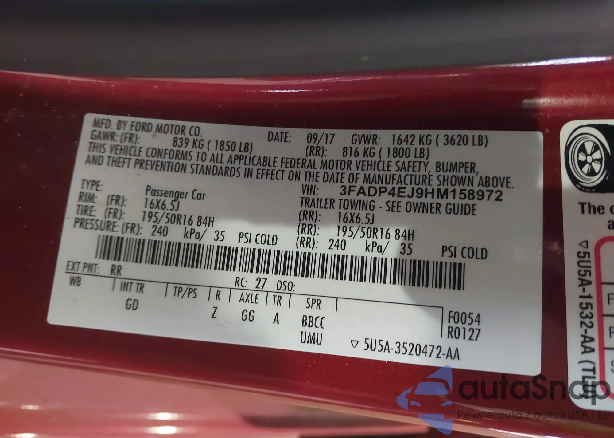 VIN: 3FADP4EJ9HM158972