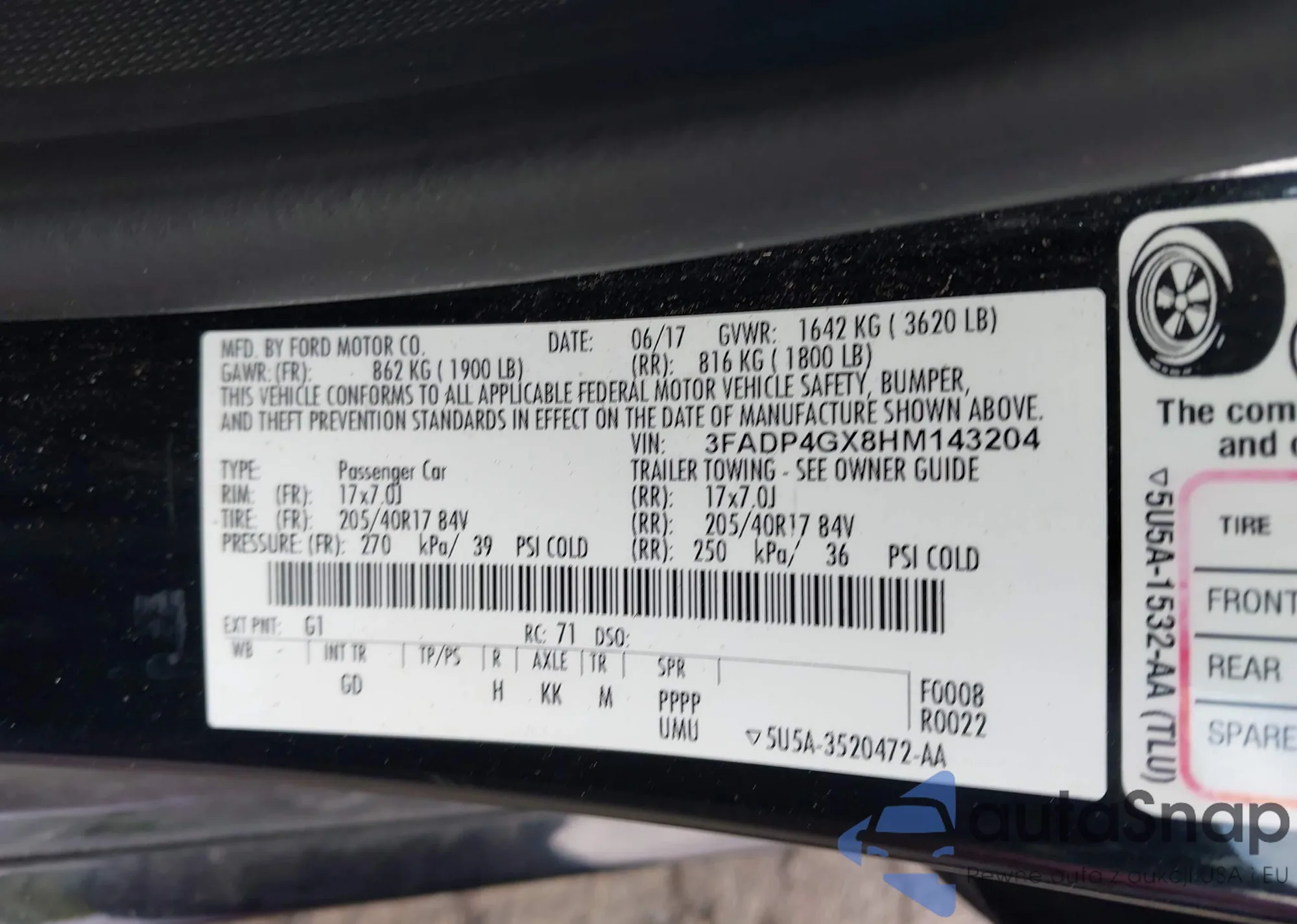 VIN: 3FADP4GX8HM143204