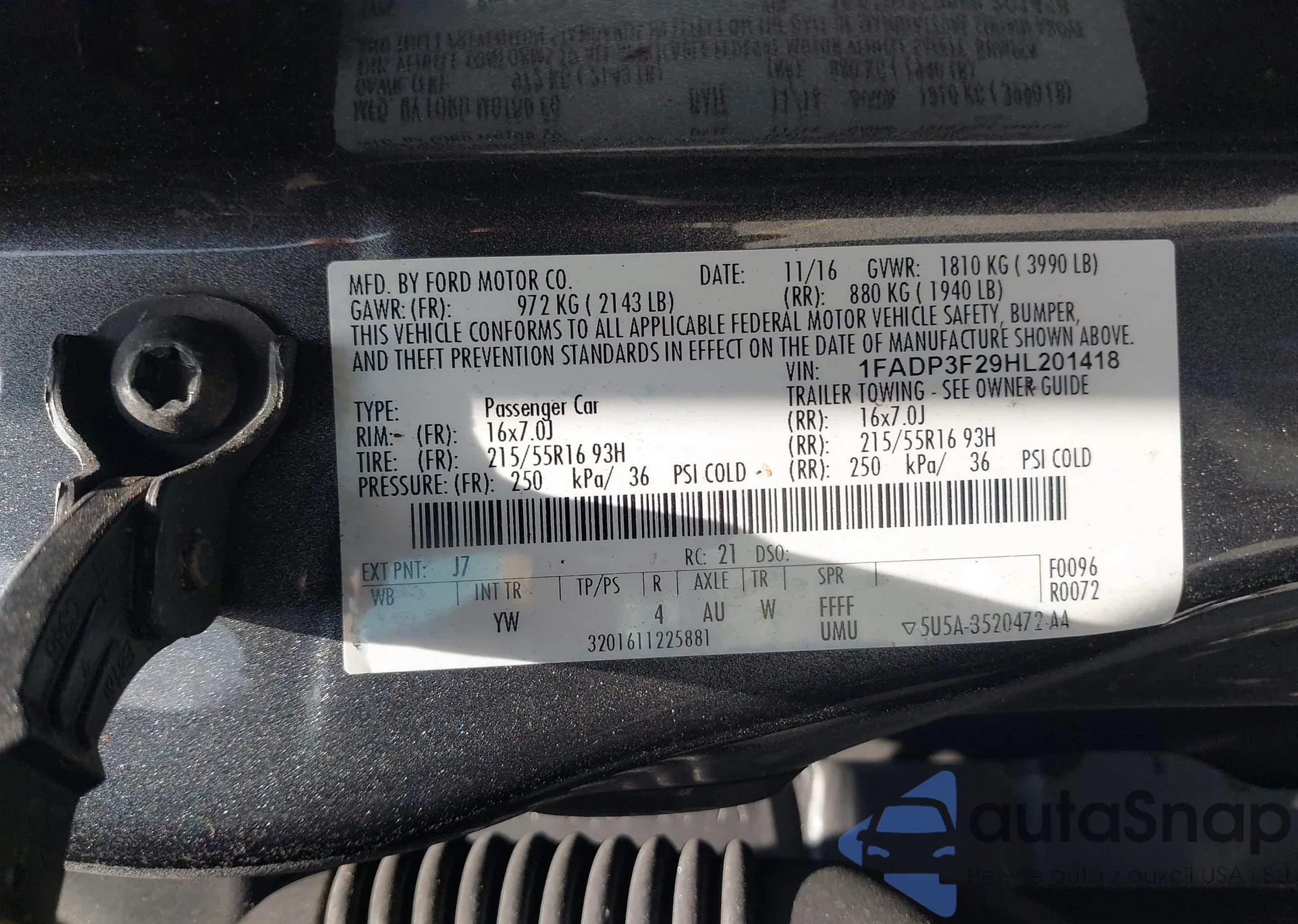 VIN: 1FADP3F29HL201418