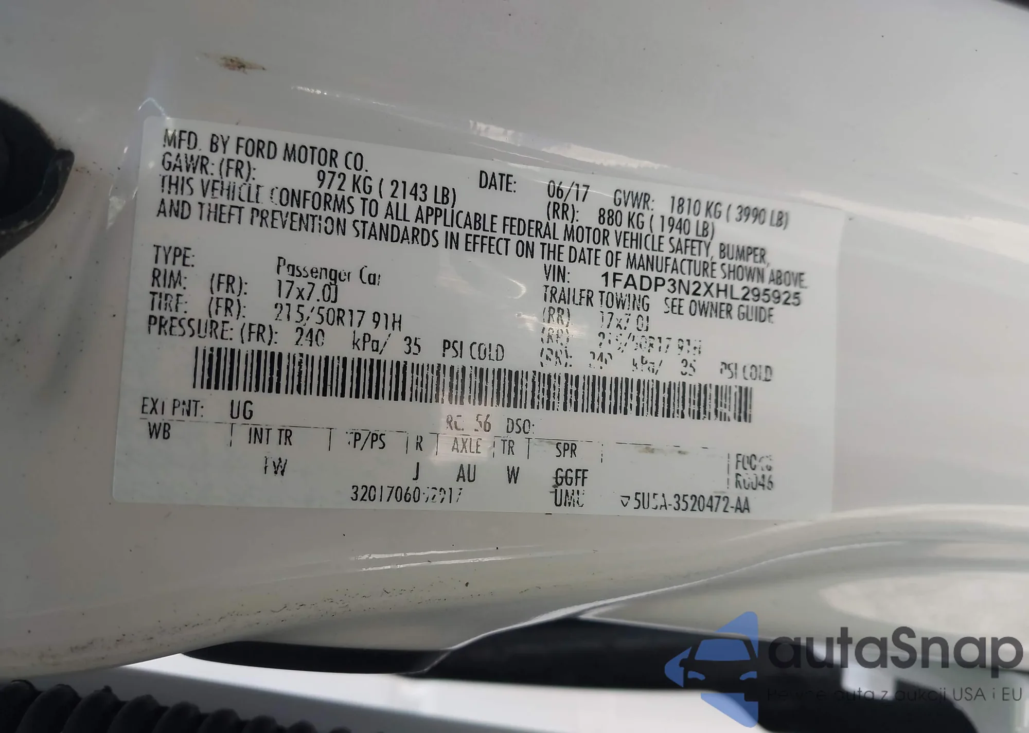 • VIN: 1FADP3N2XHL295925