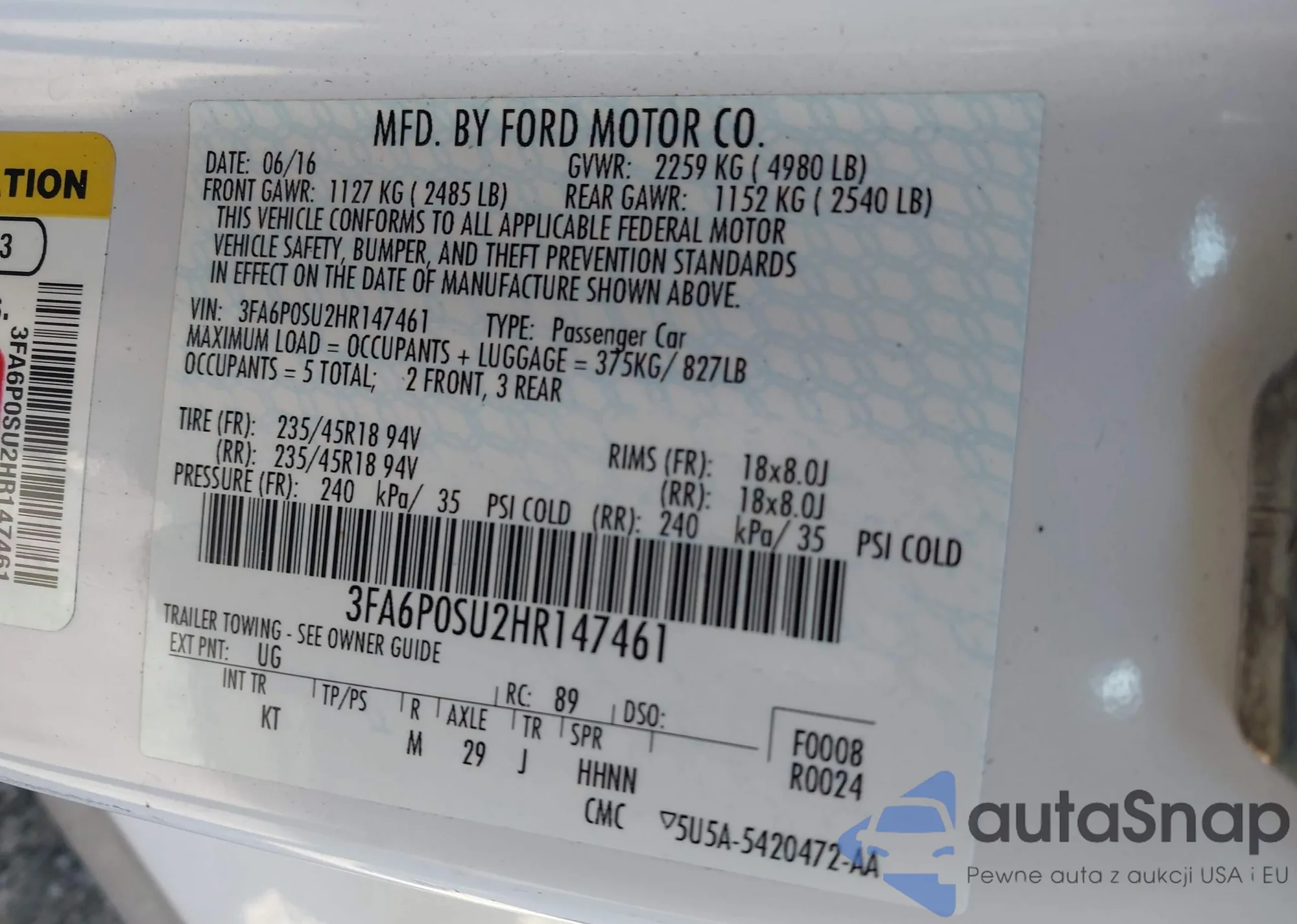 VIN: 3FA6P0SU2HR147461