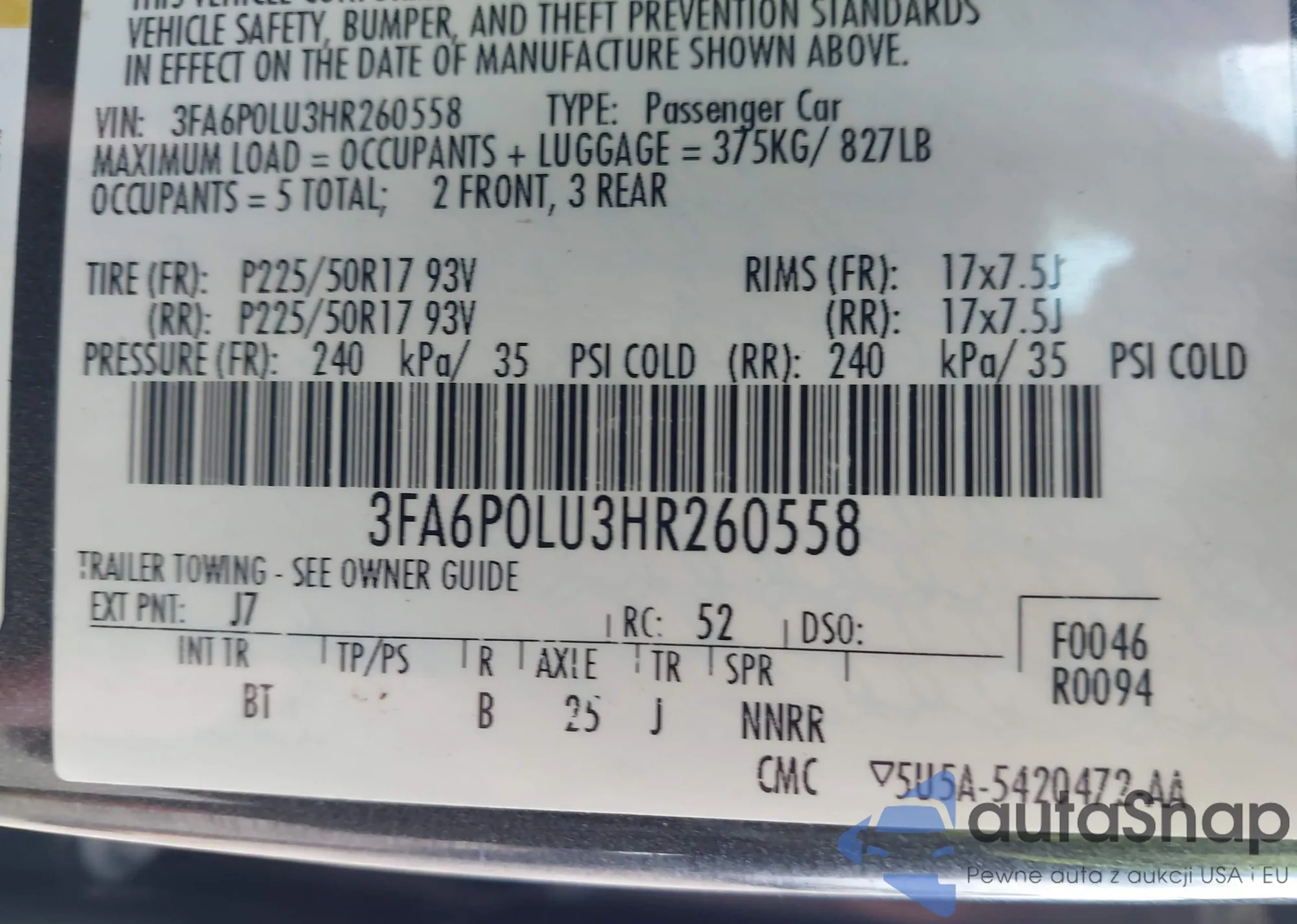 VIN: 3FA6P0LU3HR260558