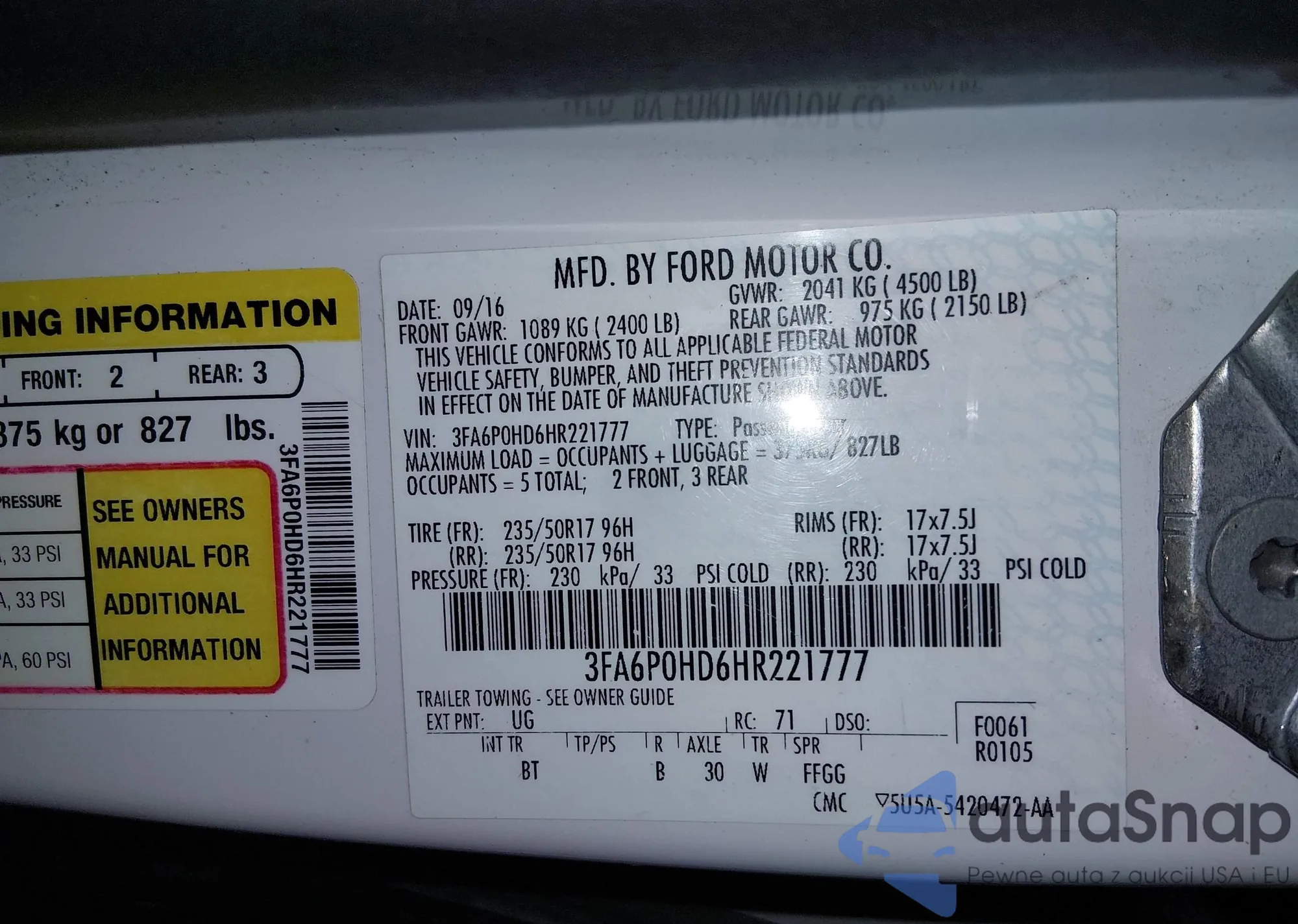 • VIN: 3FA6P0HD6HR221777