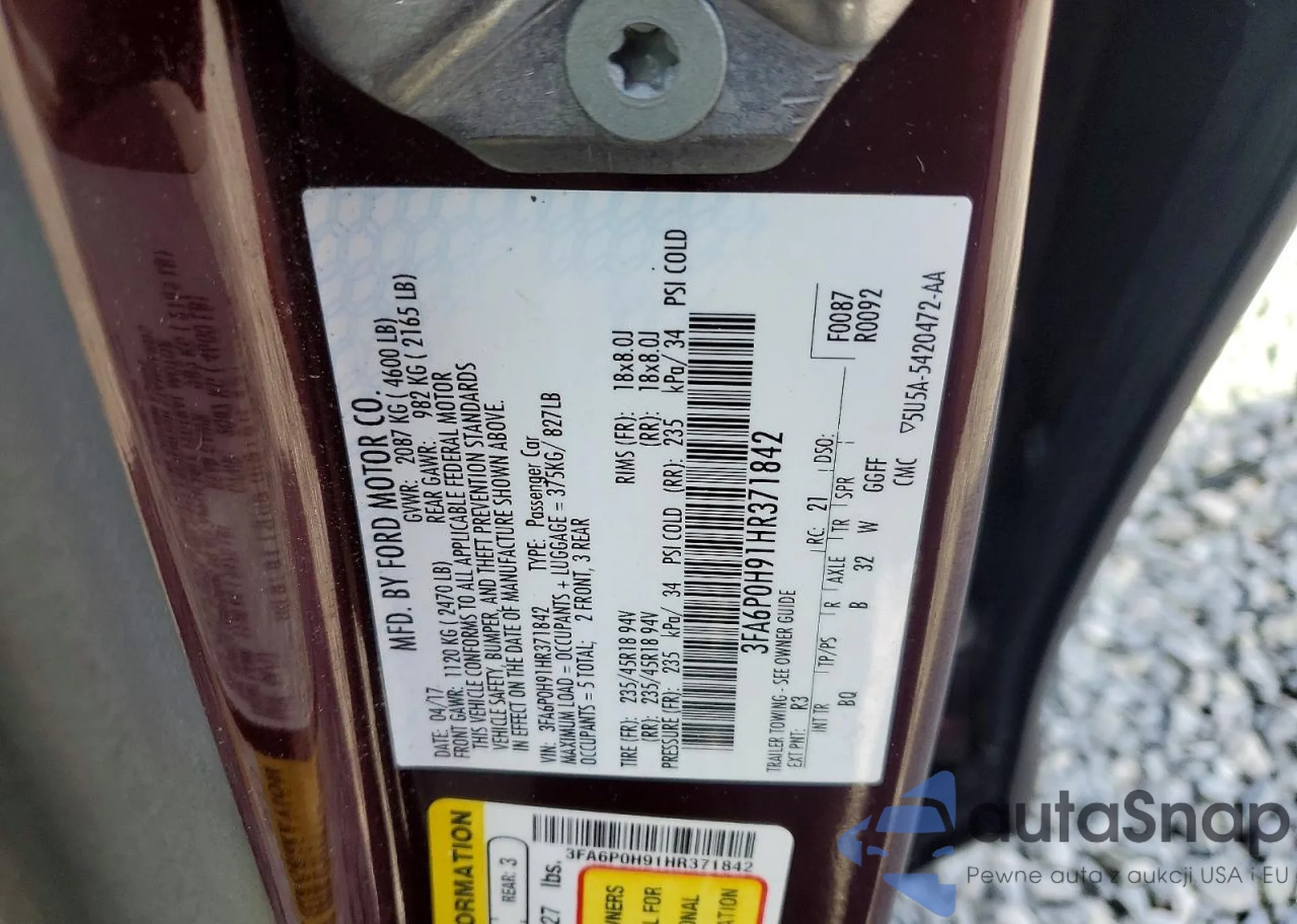 Samochód Ford Fusion 2017 (VIN 3FA6P0H91HR371842) sprzedaje go niezweryfikowany sprzedawca. Zalecamy raport Carfax i potwierdzenie możliwości rejestracji pojazdu przed zakupem.