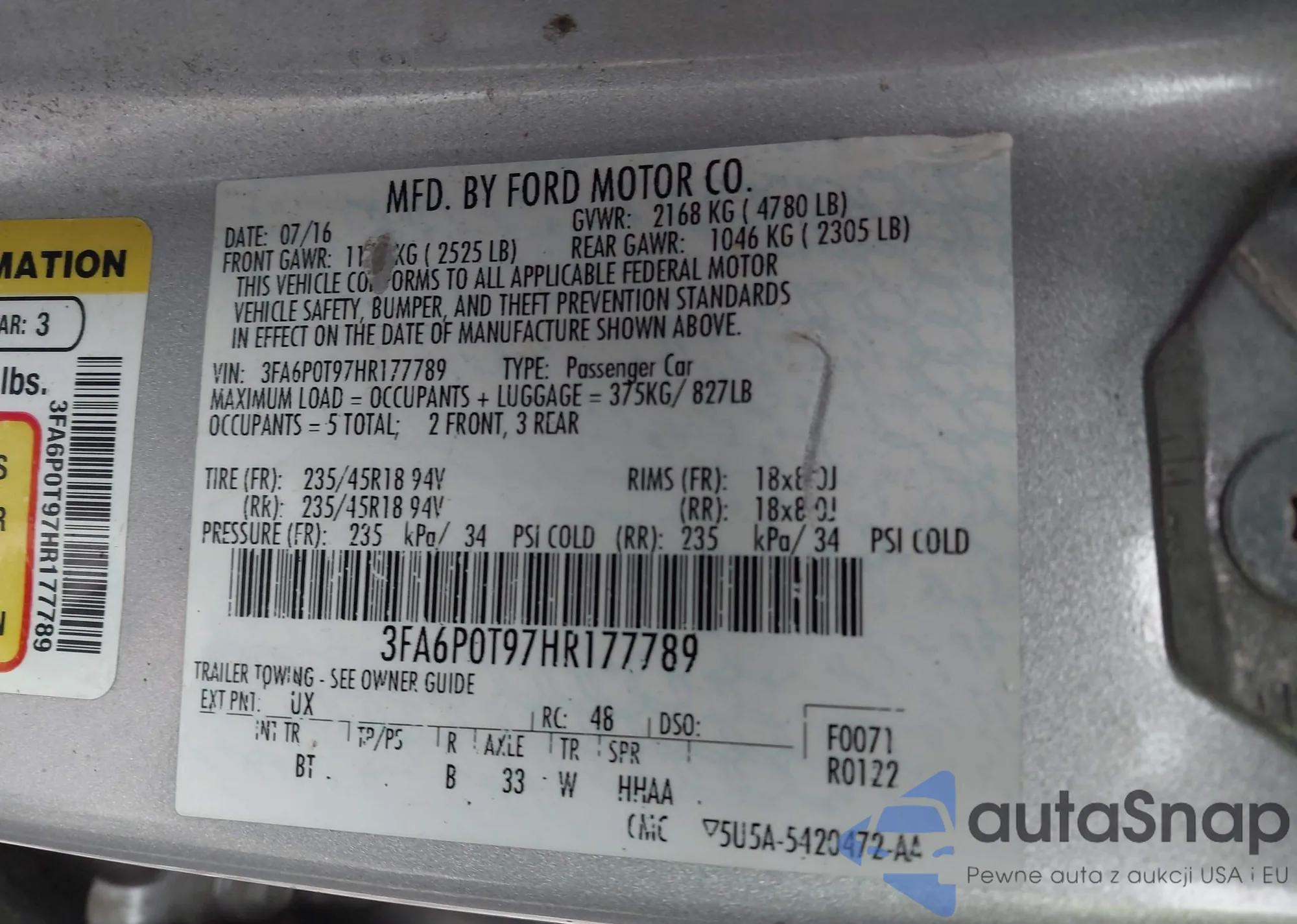 VIN: 3FA6P0T97HR177789