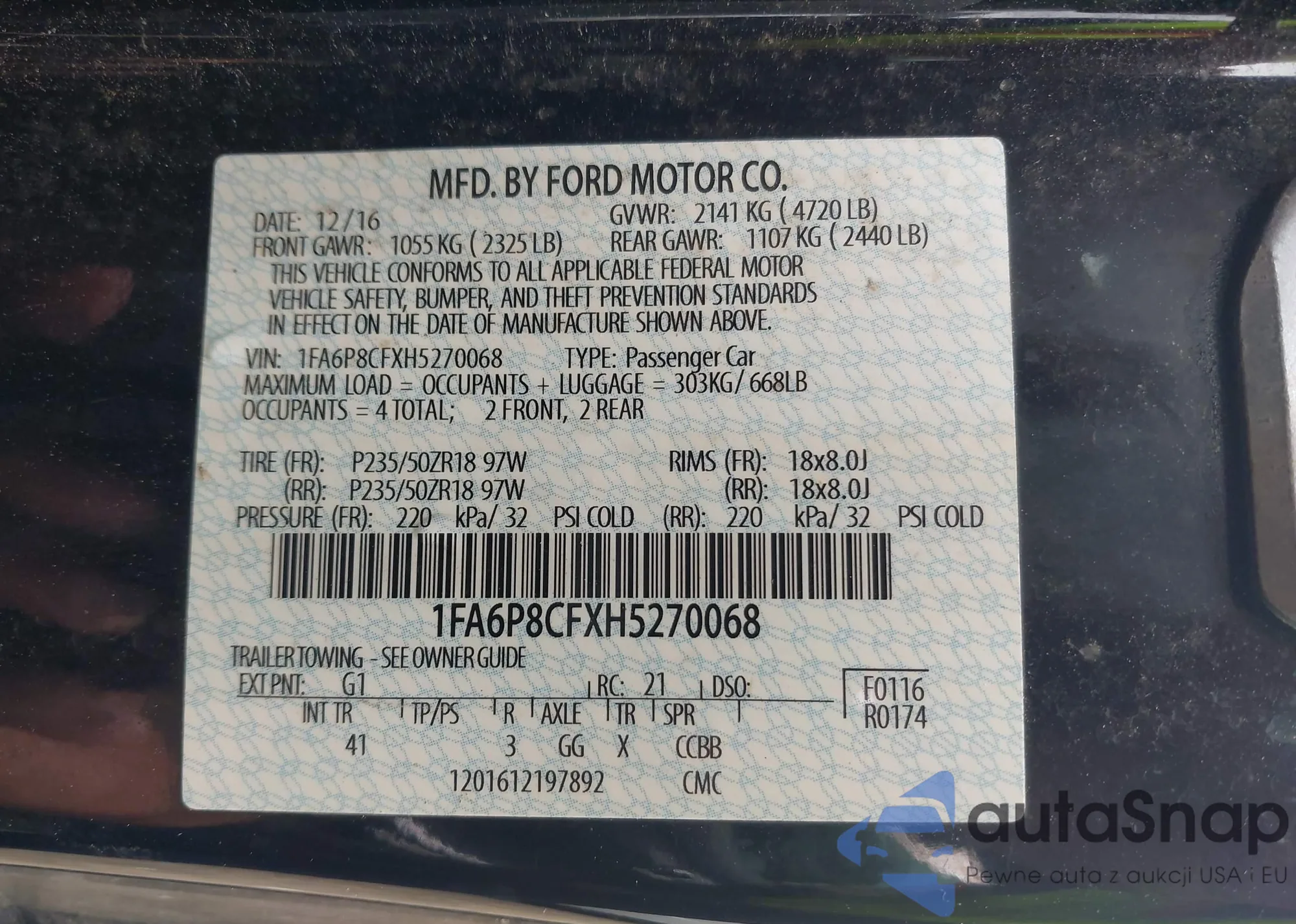 VIN: 1FA6P8CFXH5270068