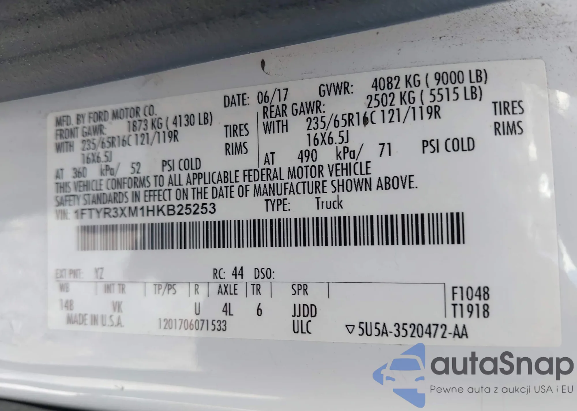 VIN: 1FTYR3XM1HKB25253
