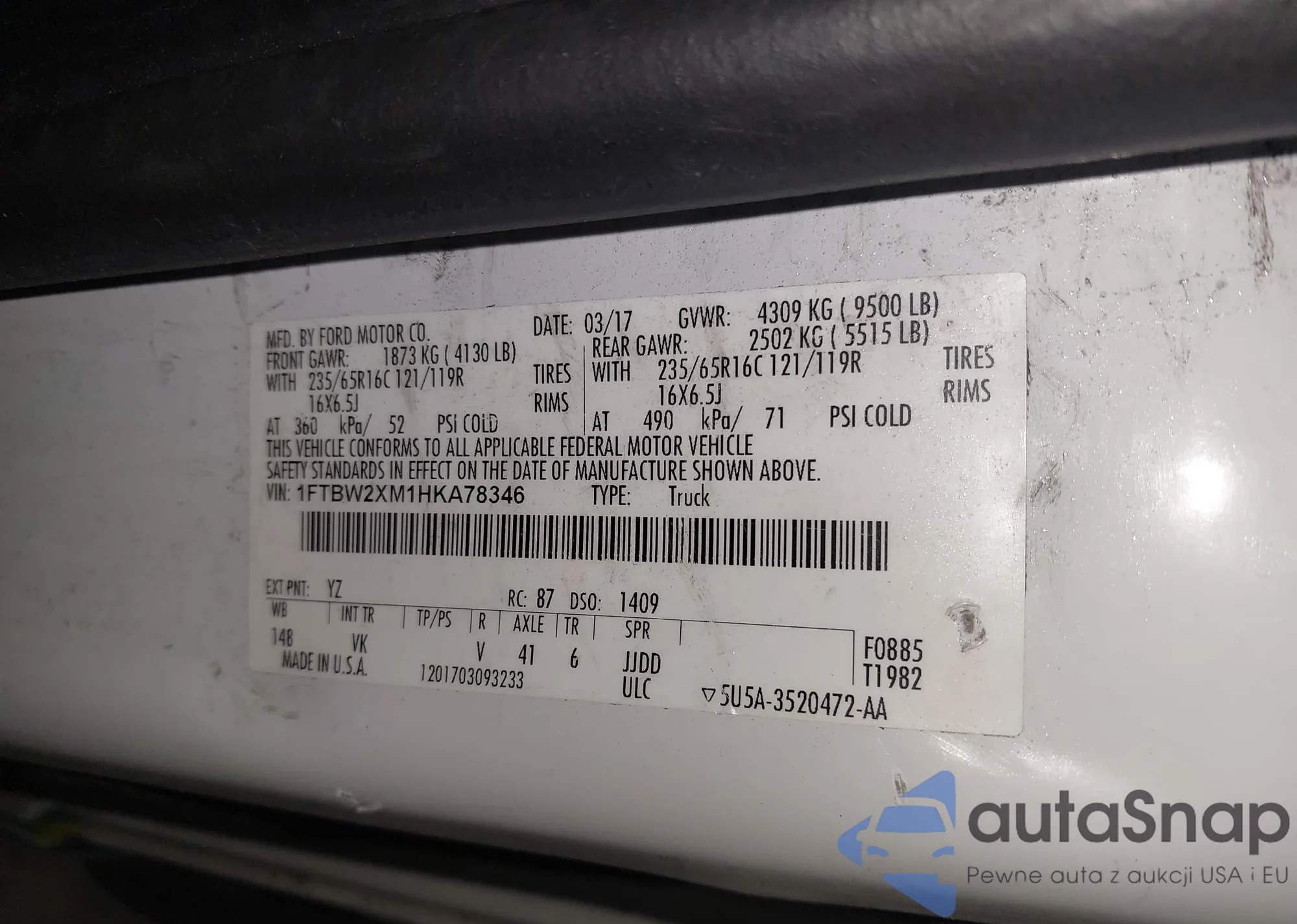 VIN: 1FTBW2XM1HKA78346