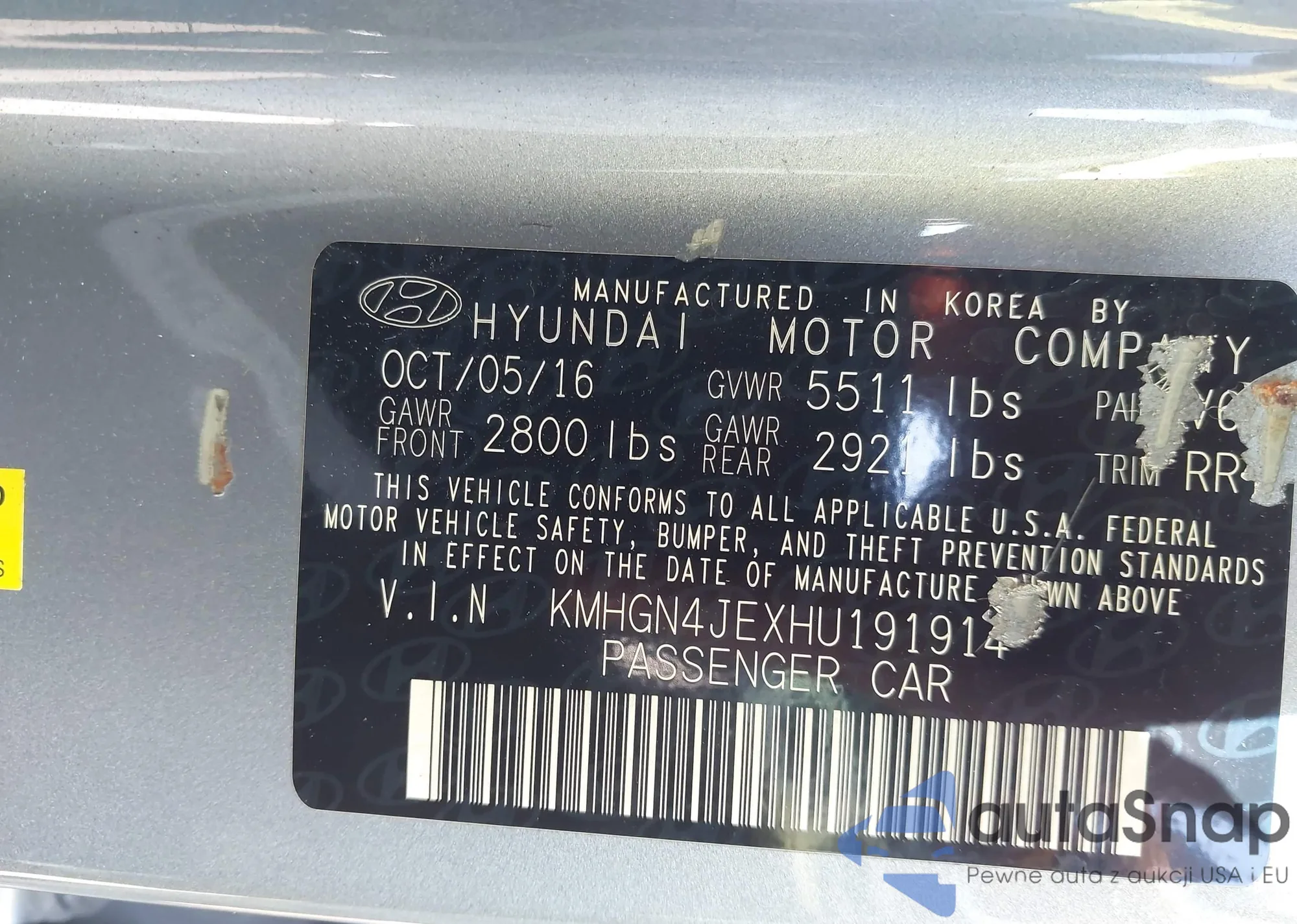 • VIN: KMHGN4JEXHU191914