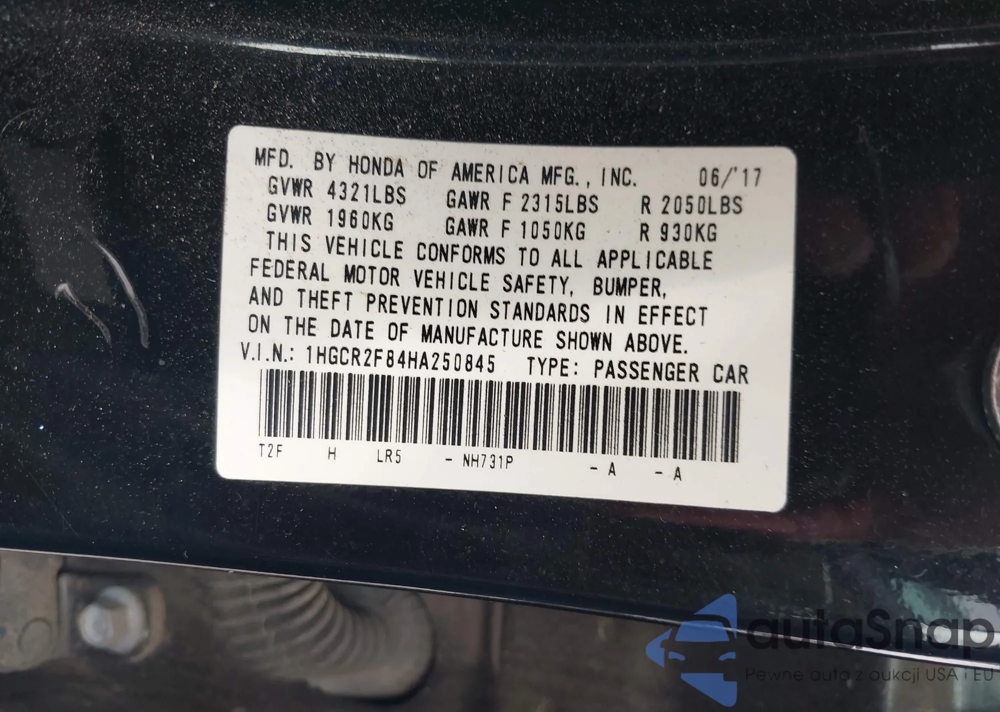 VIN: 1HGCR2F84HA250845