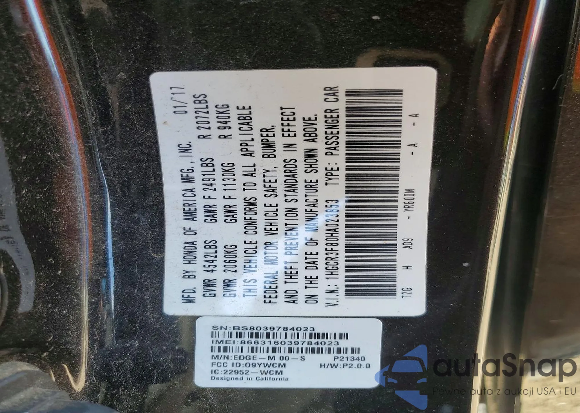 VIN: 1HGCR3F80HA023853