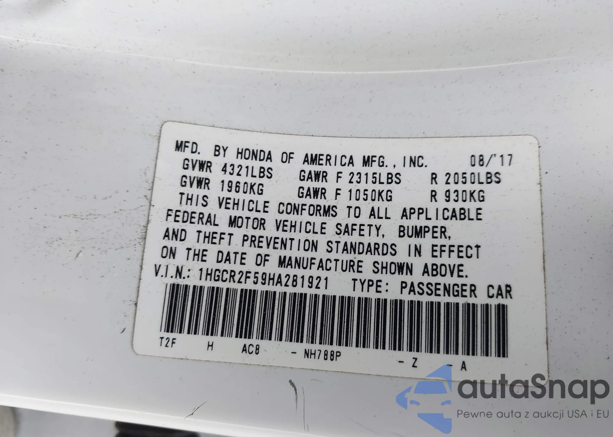 VIN: 1HGCR2F59HA281921