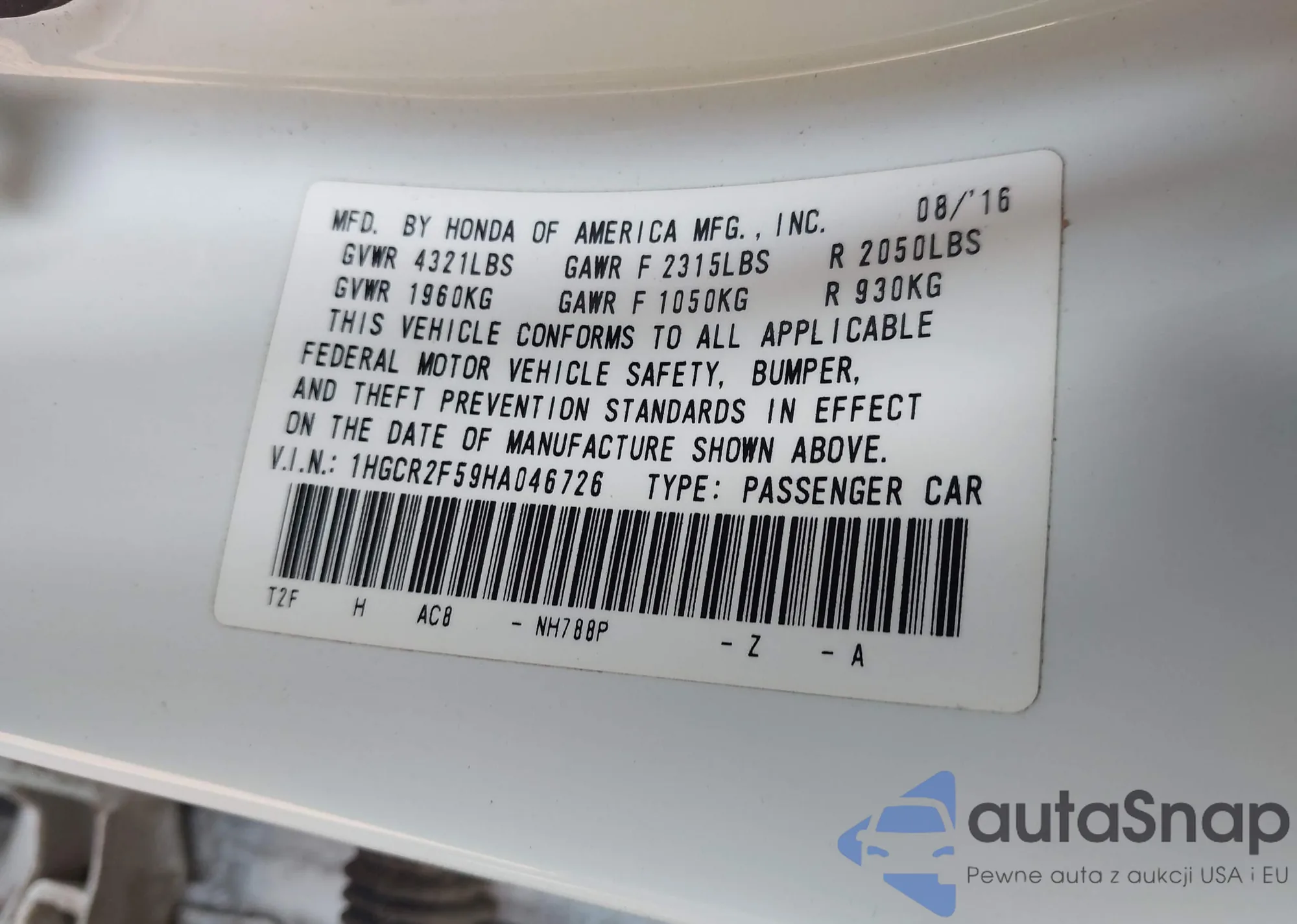 VIN: 1HGCR2F59HA046726