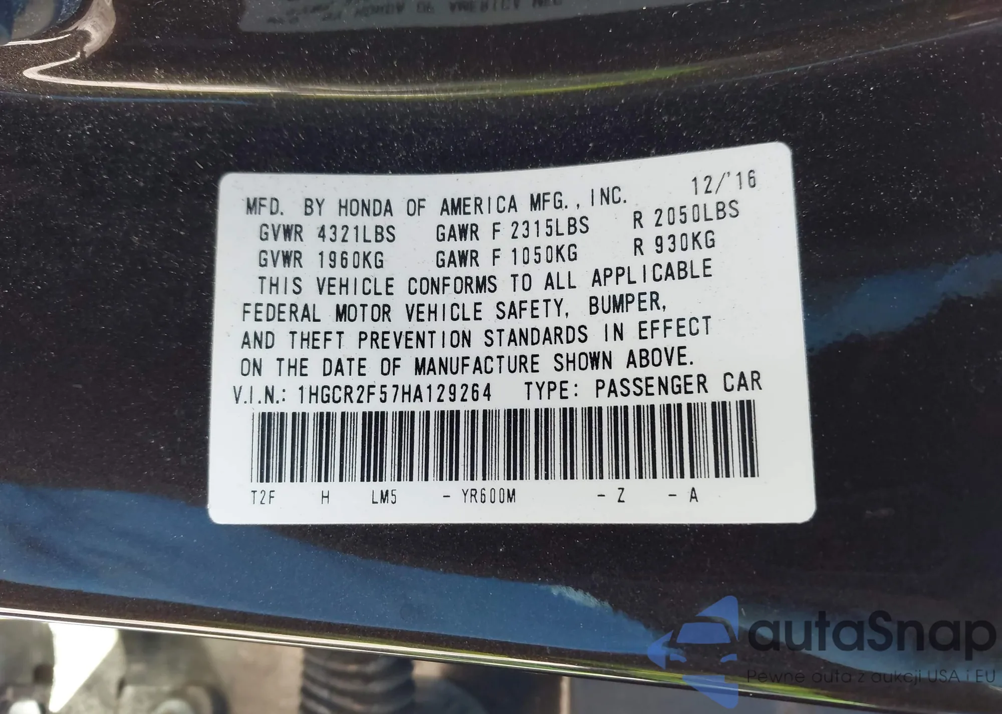 VIN: 1HGCR2F57HA129264