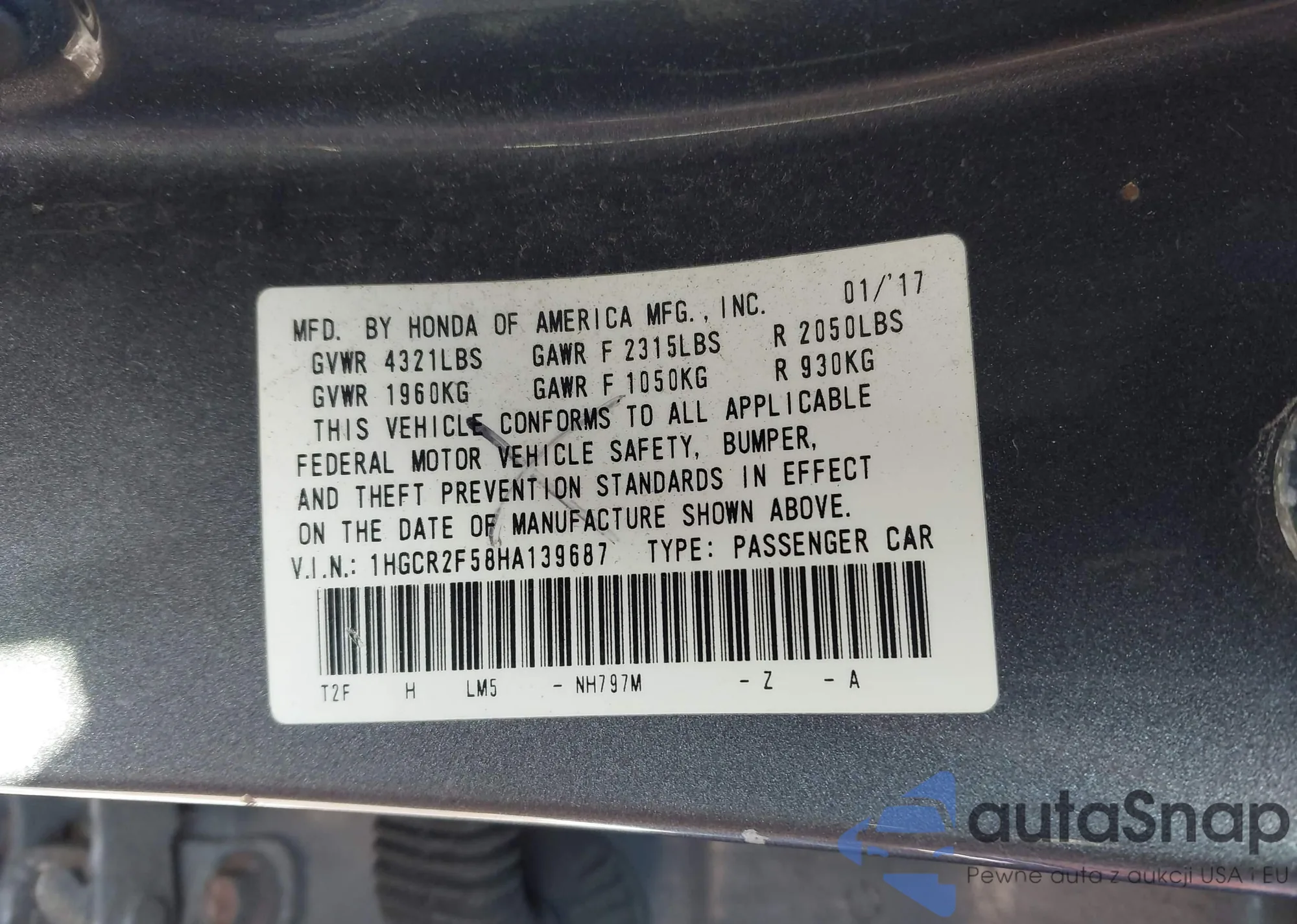 VIN: 1HGCR2F58HA139687