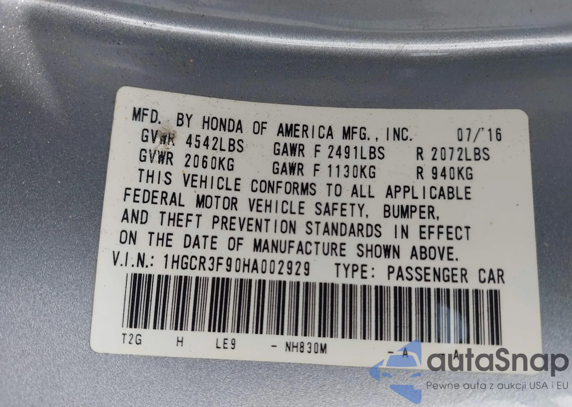 VIN: 1HGCR3F90HA002929